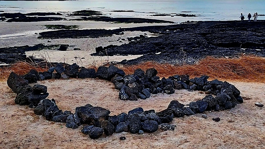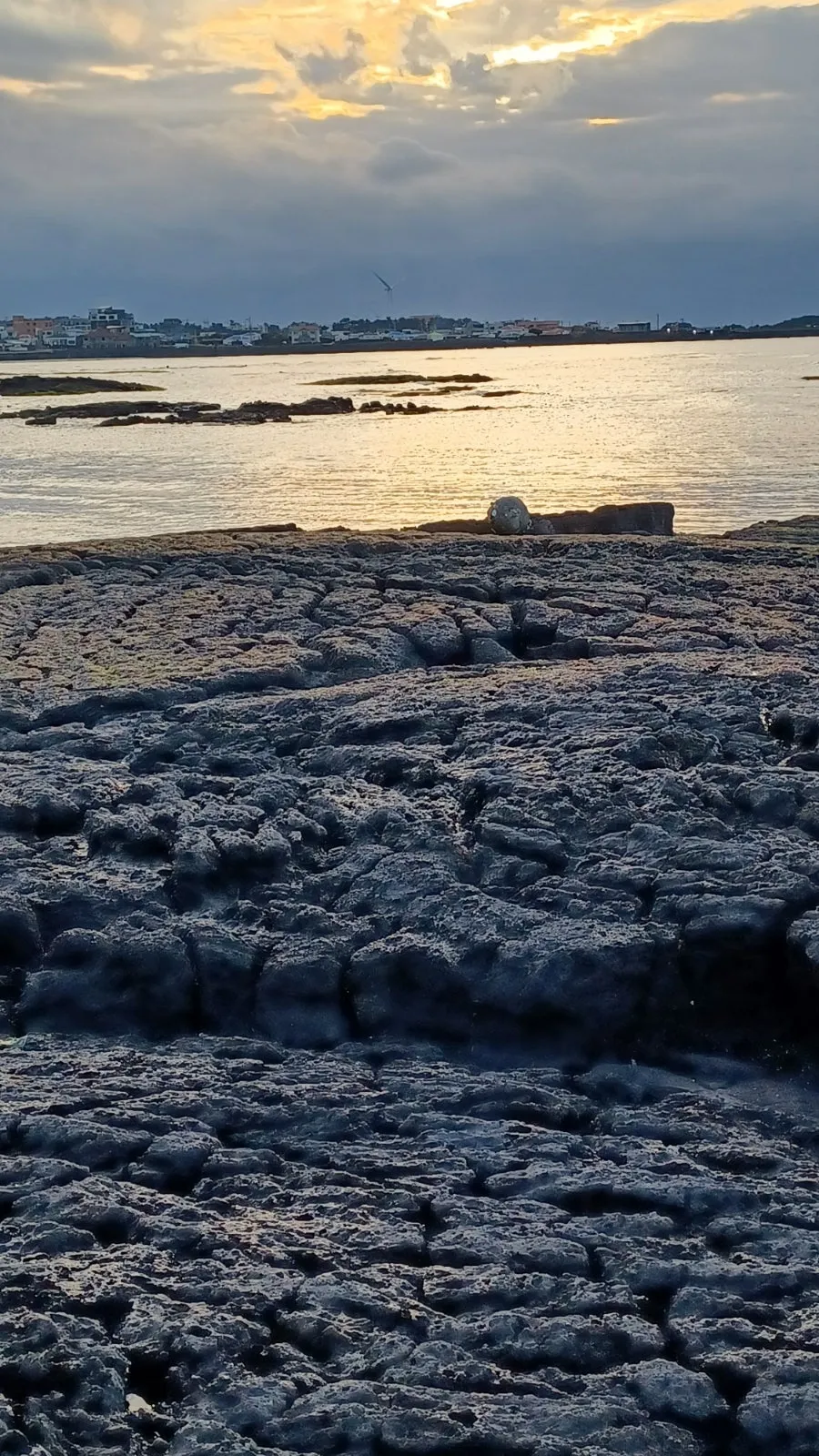 분출되던 불덩이 용암은 흘러내리다 바닷물 만나 식어가며 굳어 기기묘묘한 검은 암반 되었다.