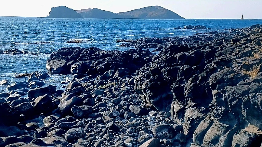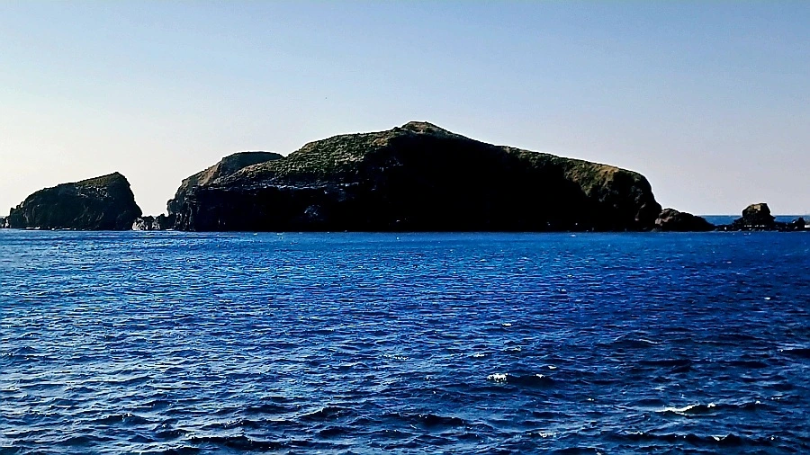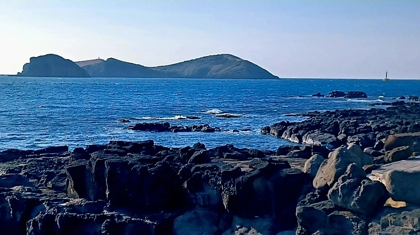 아기 고래 비슷하게 생긴 섬과 대섬 사이에 솟은 쌍봉섬 또렷해지면 차귀 방파제다.