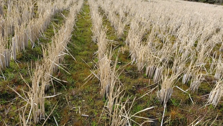 벼 베고 난 그루터기만 남은 논바닥에 빈틈없이 빼곡 들어찬 풀들.