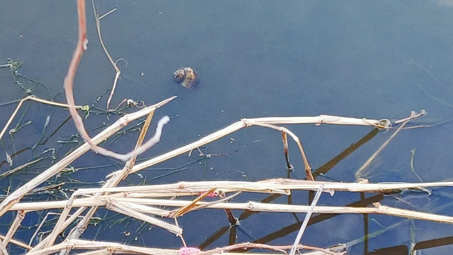 살아있는 우렁이가 아니라 물에 둥둥 떠있는 속이 빈 우렁이 껍데기이긴 하지만.