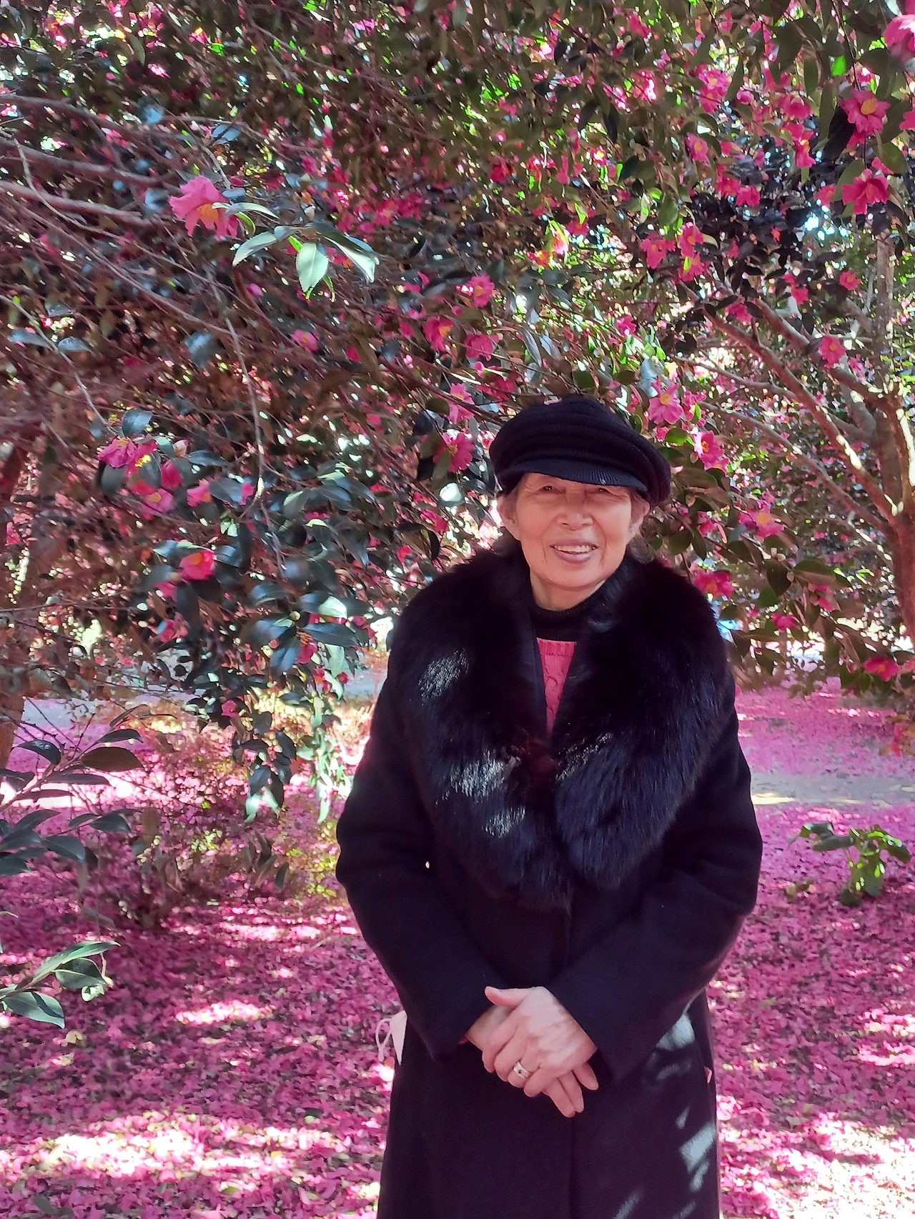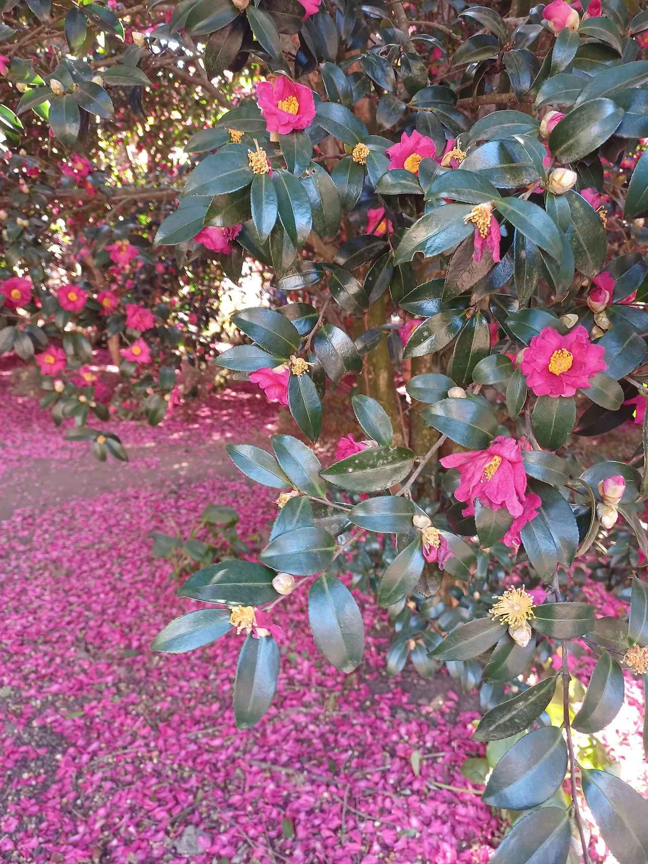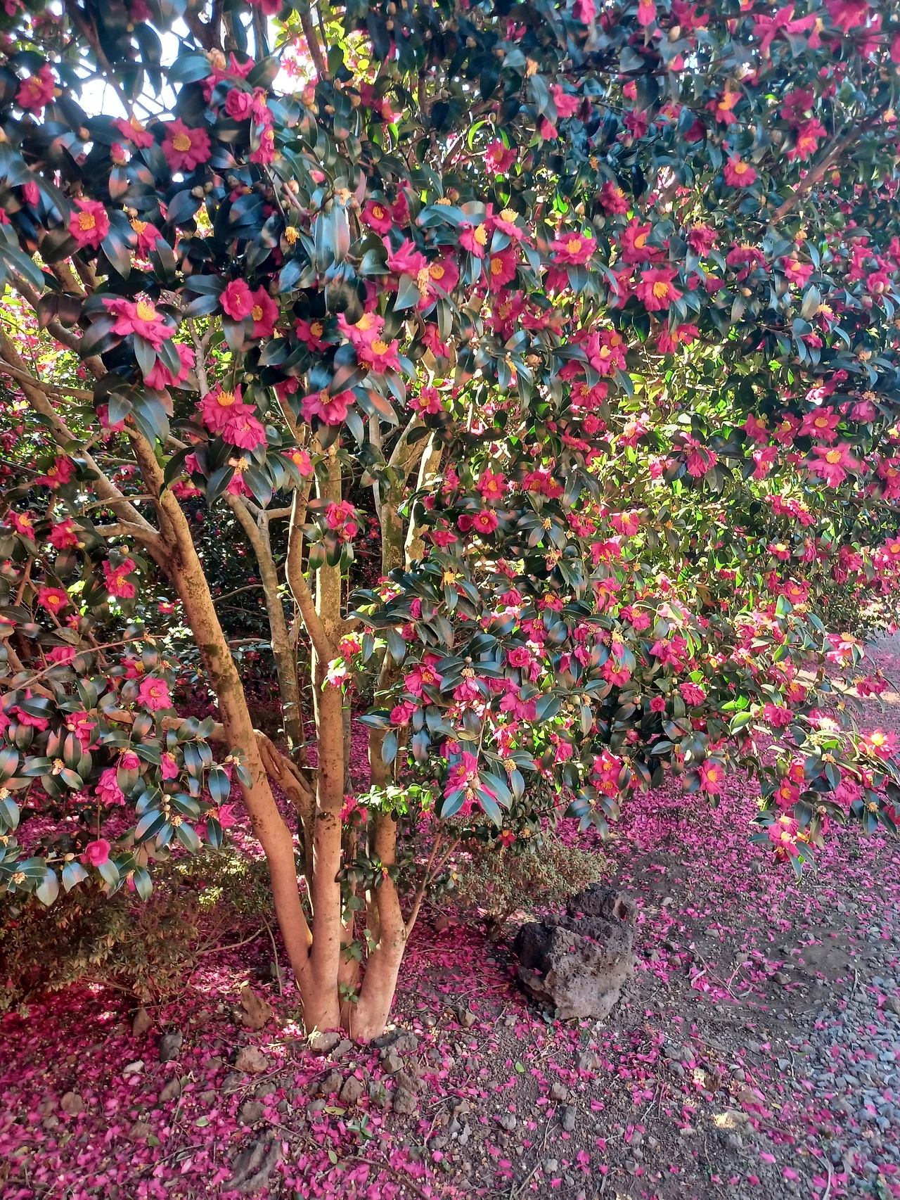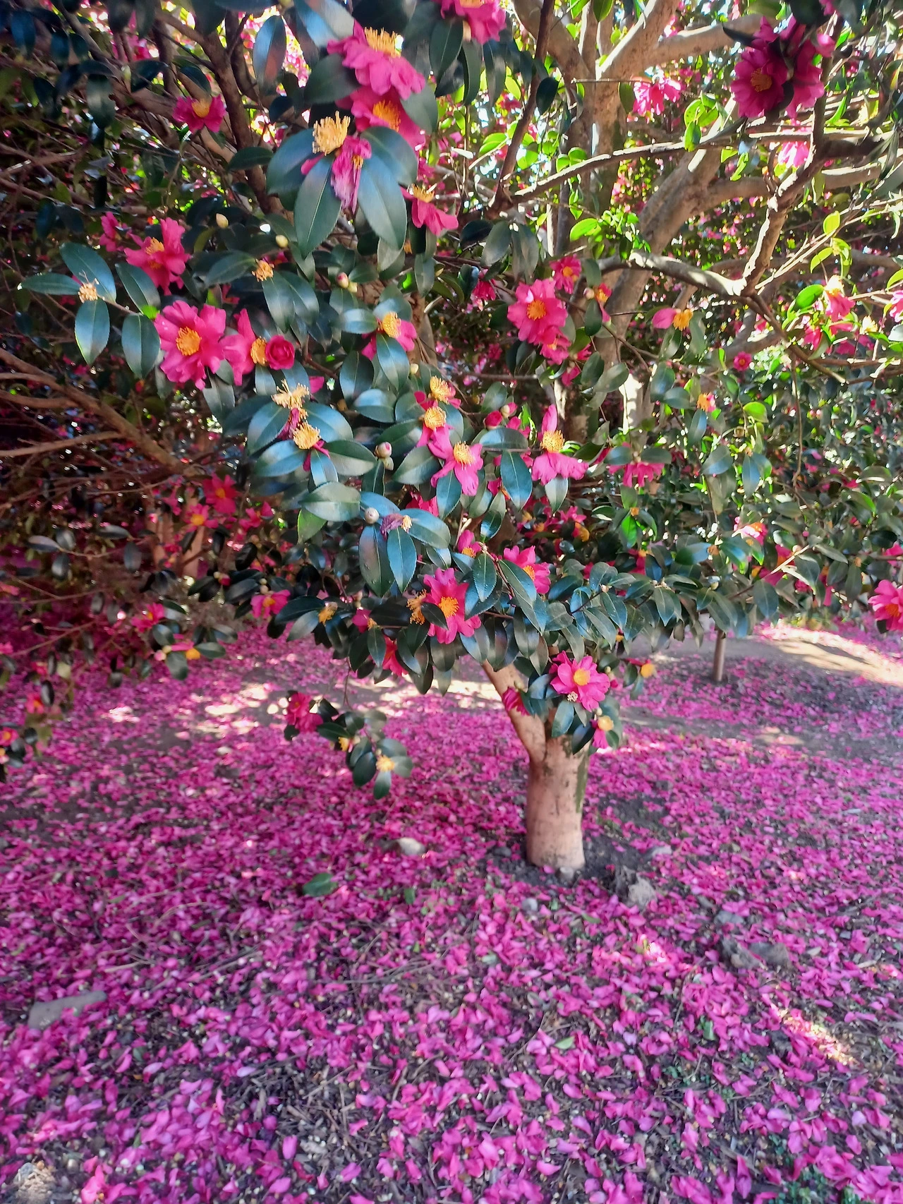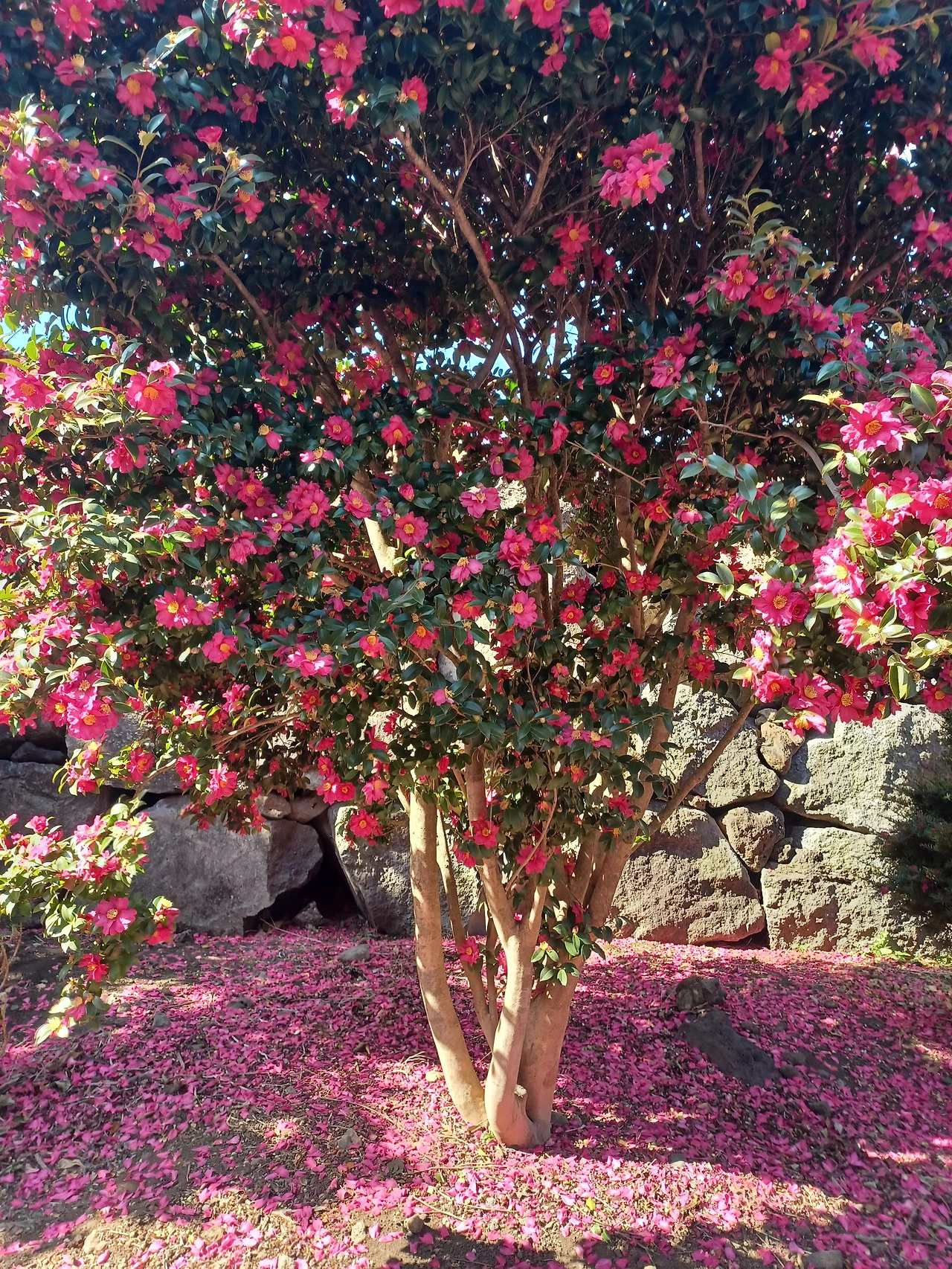 애기동백은 끝까지 가지를 떠나지 않으려 고집하지 않는다.