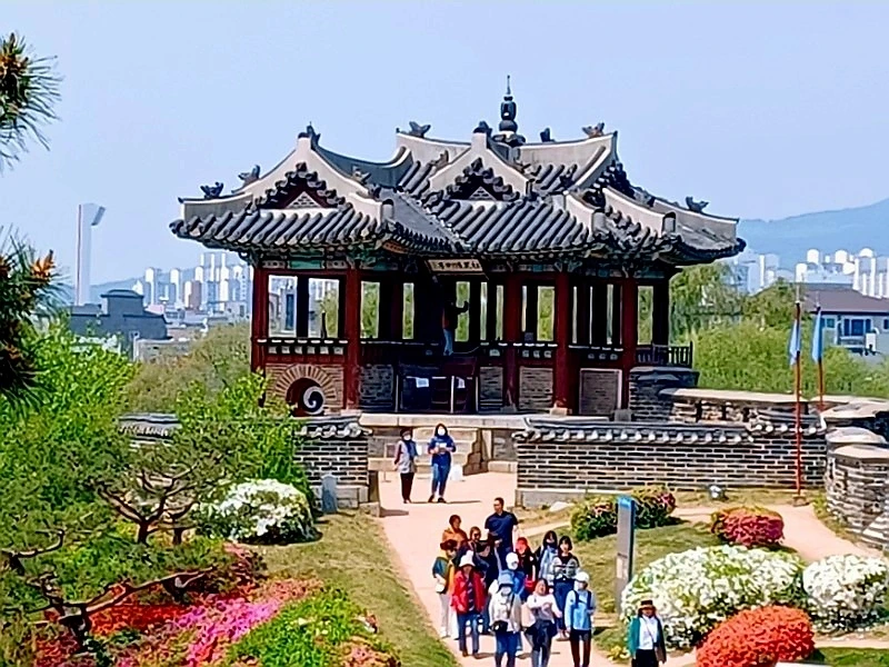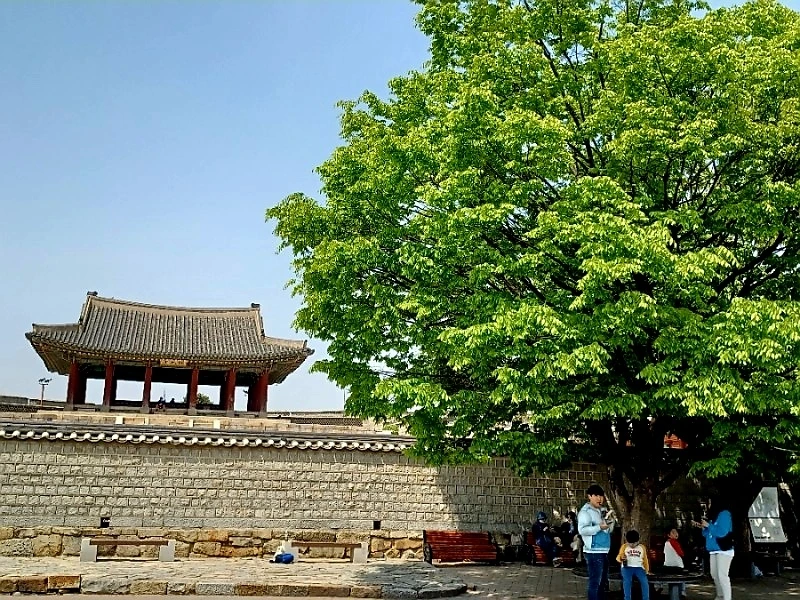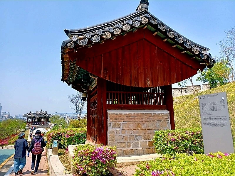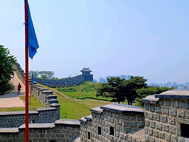 성곽이 있는 멋진 둘레길을 알게 된 우리는 걸어서 행궁까지 가기로 했