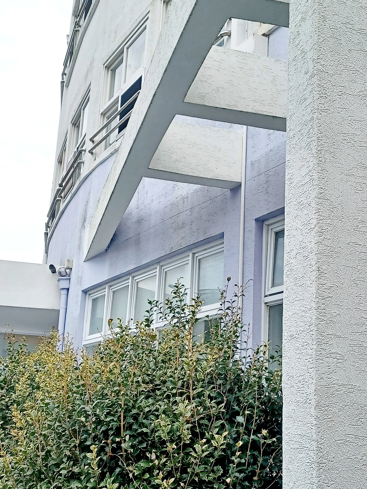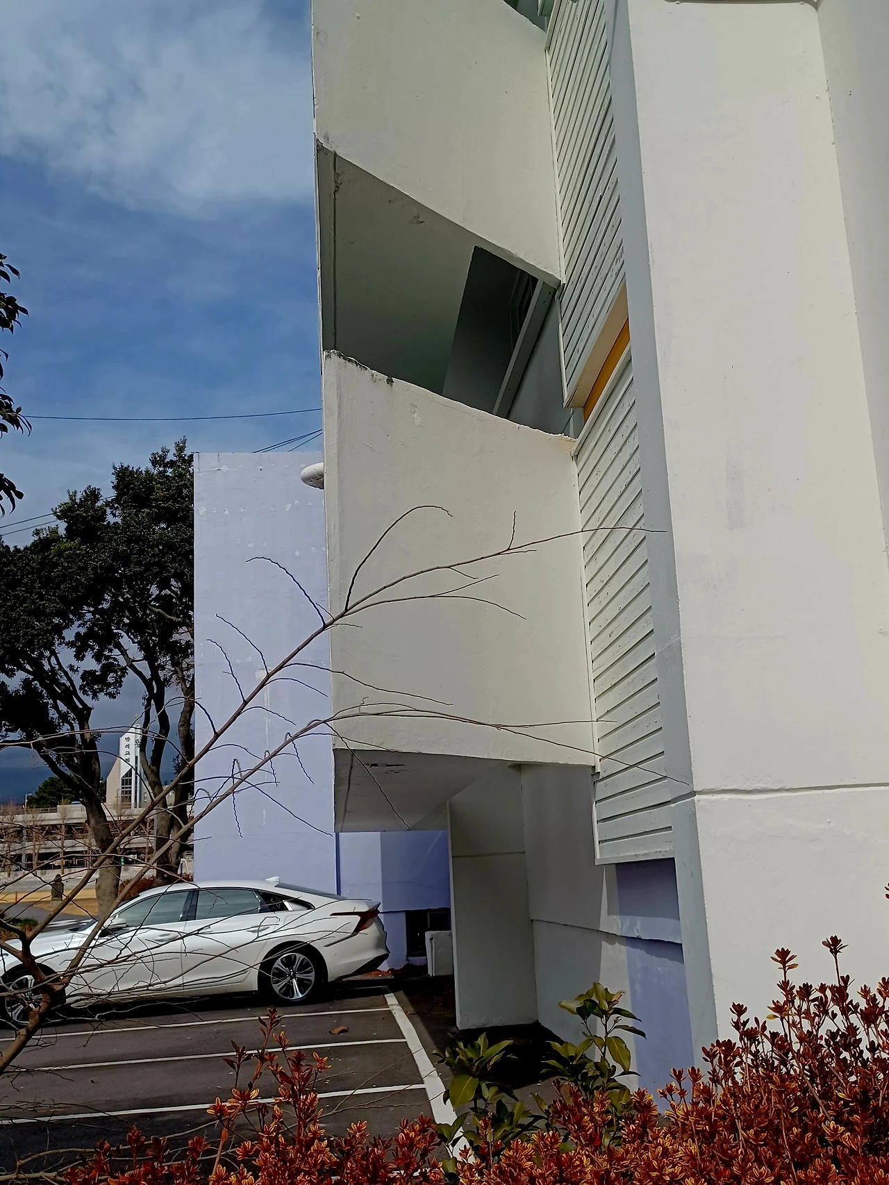 오늘은 햇살이 강하지 않아 접하지 못했지만 층마다 넓게 드리워진 차양이 햇빛을 만나며 그림자가 생기면 차양과 그림자가 독특한 추상화를 만든다고.
