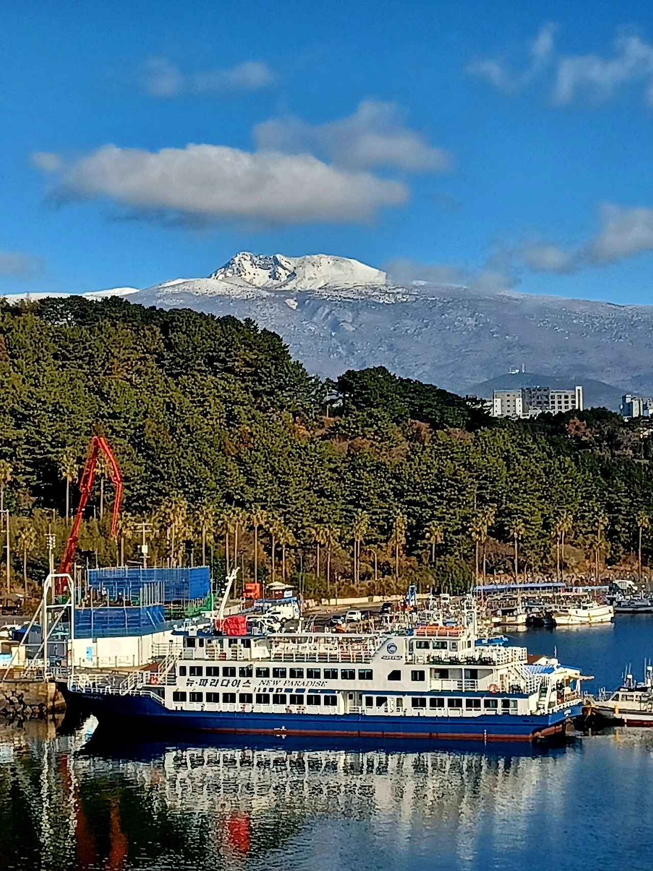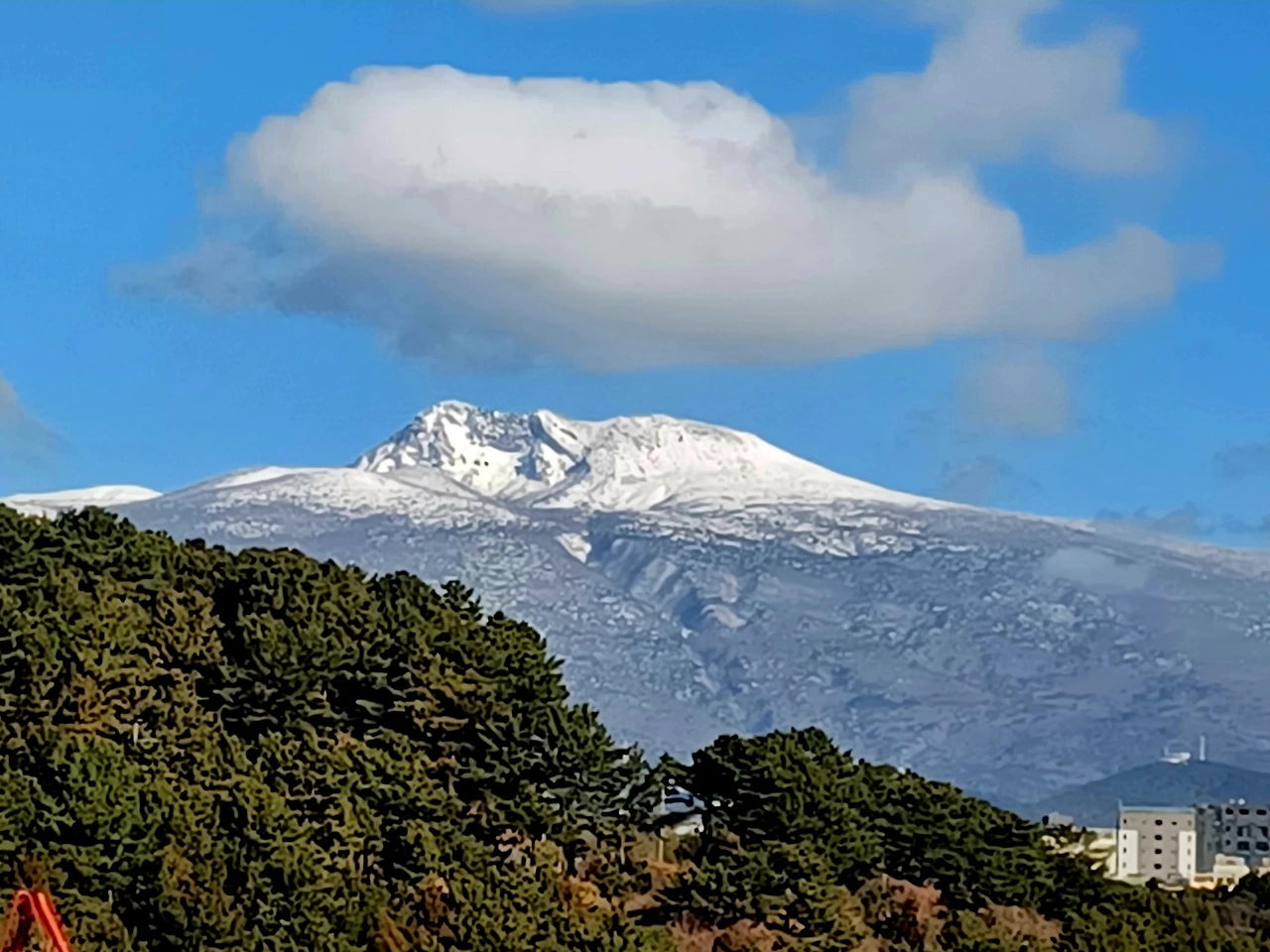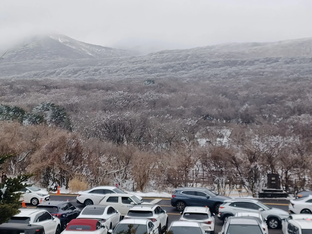 월요일 아침, 어제 항공편 결항도 있었다는데 언제 그랬냐 싶을 정도로 눈부시게 쾌청한 날씨였다. 서귀포 새연교에서 올려다본 한라산은 하얗게 분단장을 하고 있었다. 꼭 그리 보였다, 설문대할망이 아니라 새 신부가 곱게 치장하고 사틴 면사포 살풋 쓴 듯이. 새하얀 백록담이 겨울 햇살 아래 오연스레 빛났다. 저 위에 올라가면 얼마나 멋진 풍광이 기다릴 텐가. 부푼 설렘과 기대 품게 할 만큼 설경은 매혹적이었다. 시선은 자꾸 산으로 향했다. 날씨가 너무 화창해 눈이 녹지나 않을까 조바심이 났다. 그래도 차질 없이 오전일을 마치고 서둘러 눈꽃버스를 탔다.