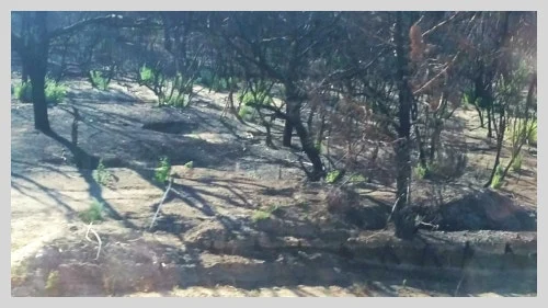 메트로 타고 LA를 가면서 지난번 '샌드 산불'이 난 광범위한 장소를 스쳐 지나갔다. 무심히 차창 밖을 내다보는데 슬쩍슬쩍 푸른 기미가 잡혔다. 등성이까지 볼품없이 불타버려 삭도로 민 듯이 까까머리 민둥산이 된 터에 대체 뭔가 싶어 자세히 살펴봤다. 나무고 풀이고 죄다 화마가 삼킨 빈터, 잿더미와 그을린 자국만 있던 곳에 초록빛이라니? 몇 달 새에 놀랍게도 나무 밑동 언저리마다 푸른 생명의 빛이 선연하게 어려있었던 것. 윗 둥치는 검게 타 숯이 됐으나 땅속뿌리만은 가상하게도 목숨의 끈을 꼭 부여잡고 있었나 보다.