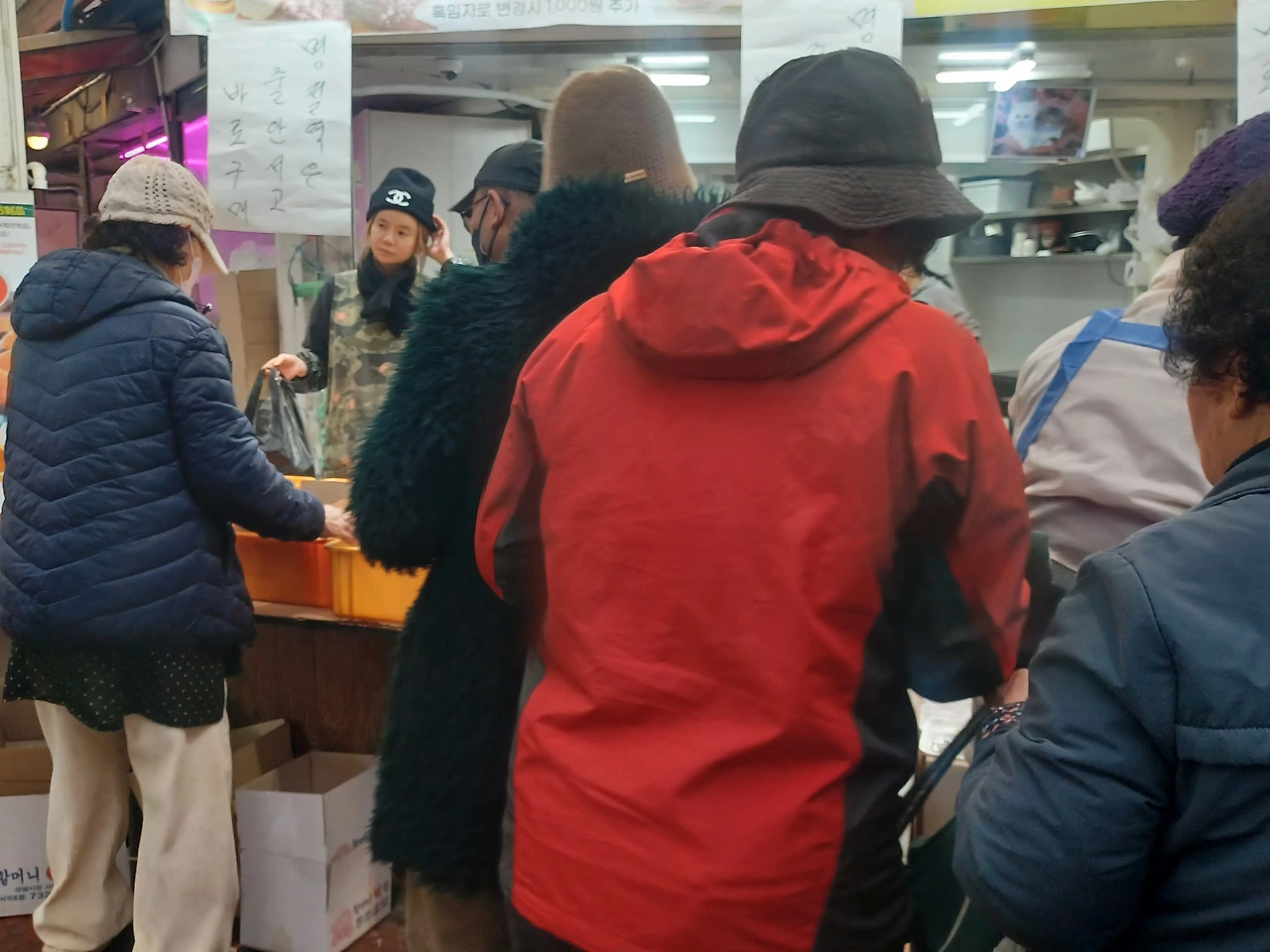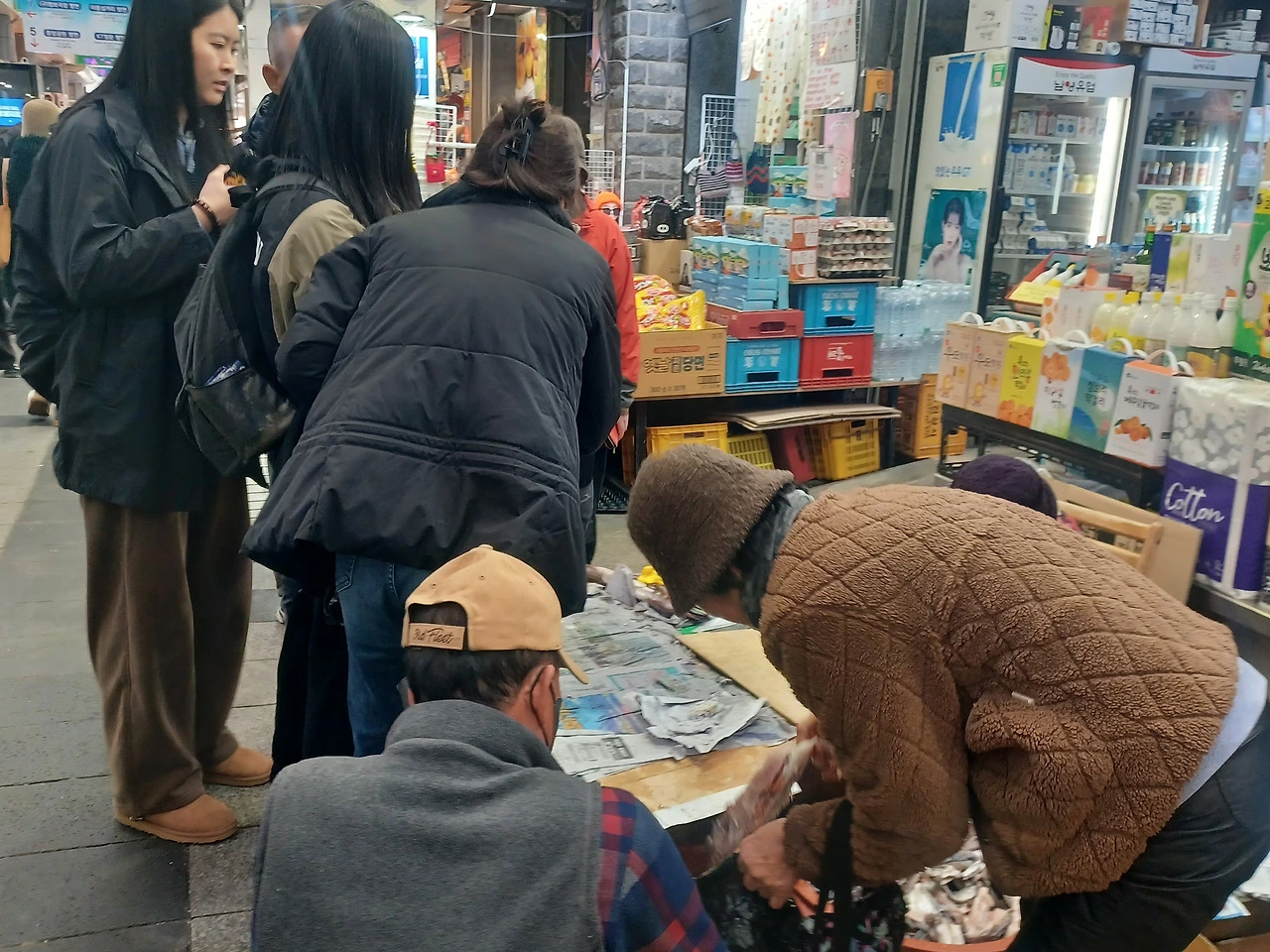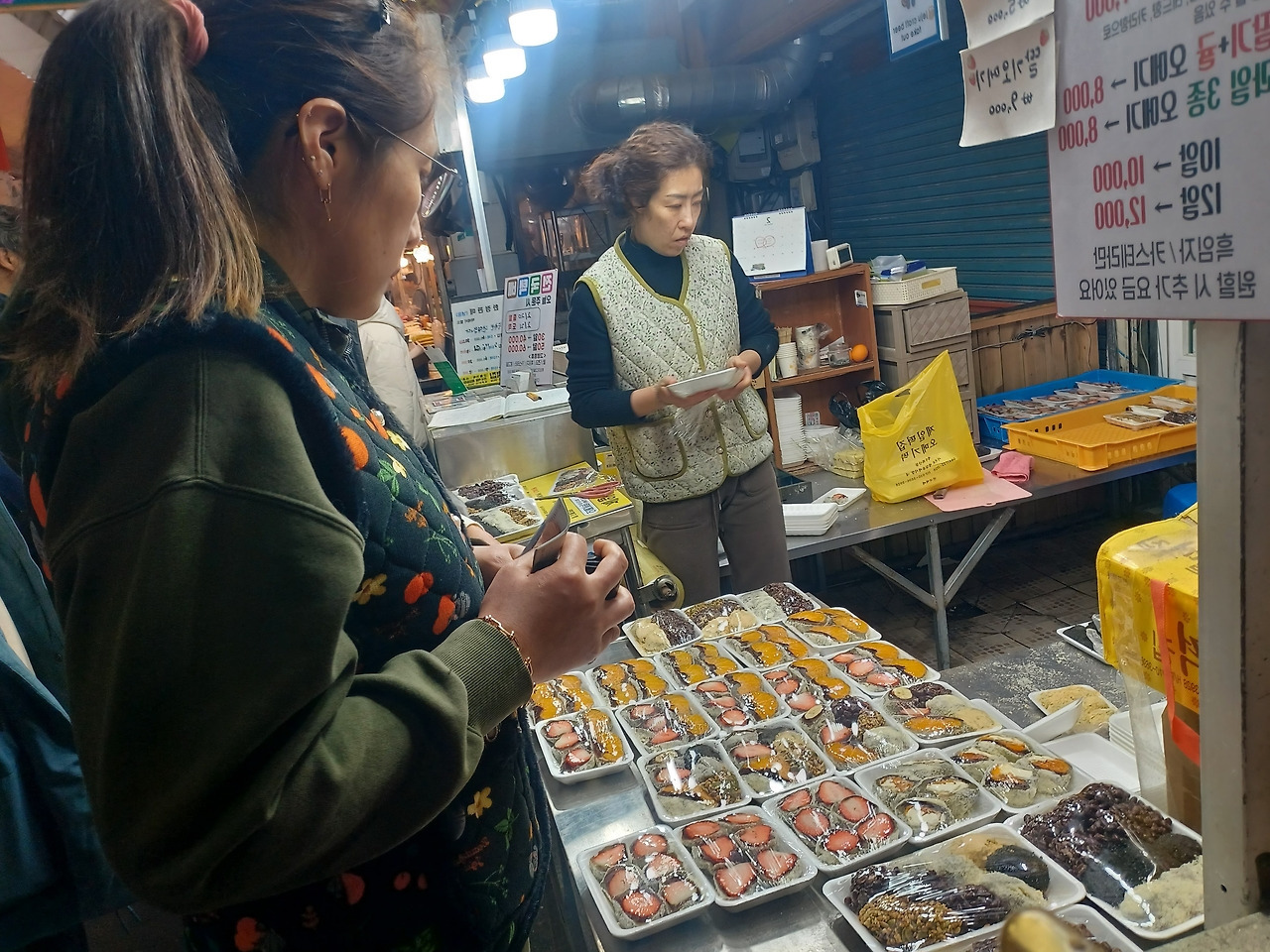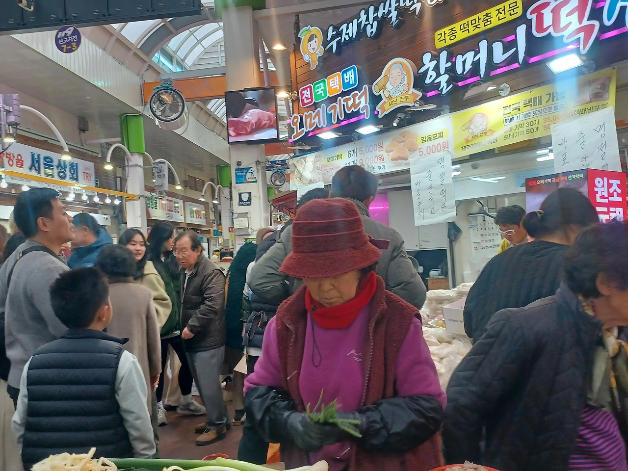 입구에 들어서자 명절을 앞둬서인지 기름 냄새와 생선 비린내, 떡 찌는 김이 한데 뒤섞였다.