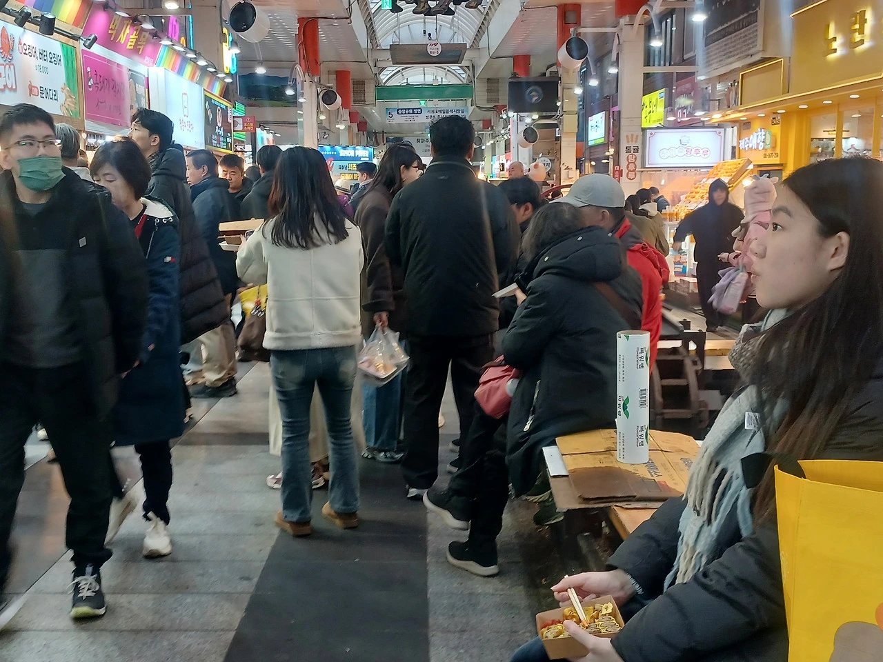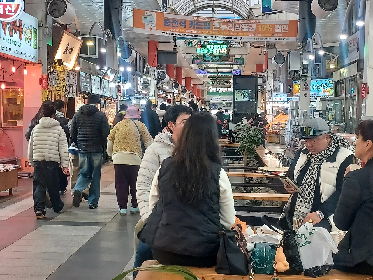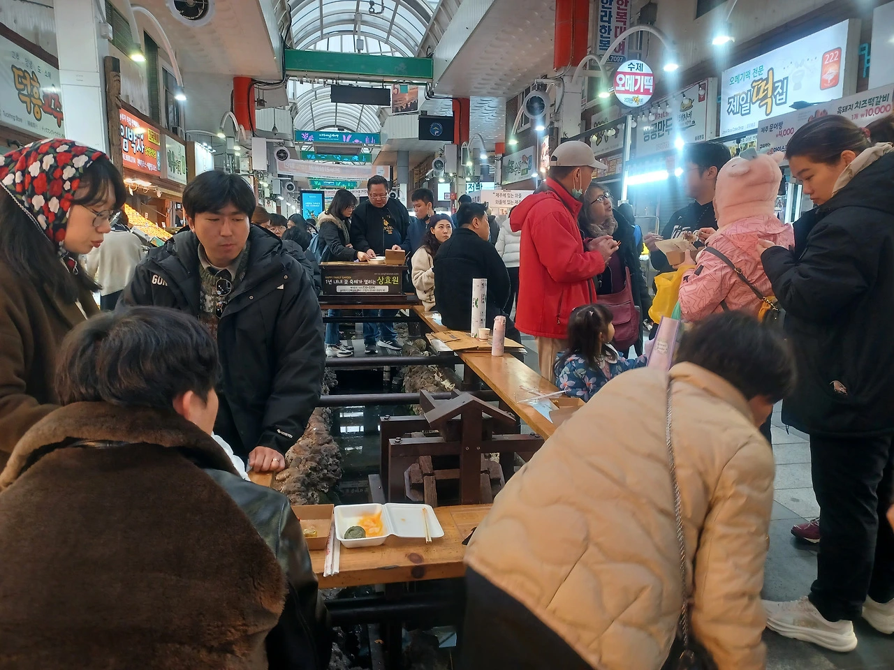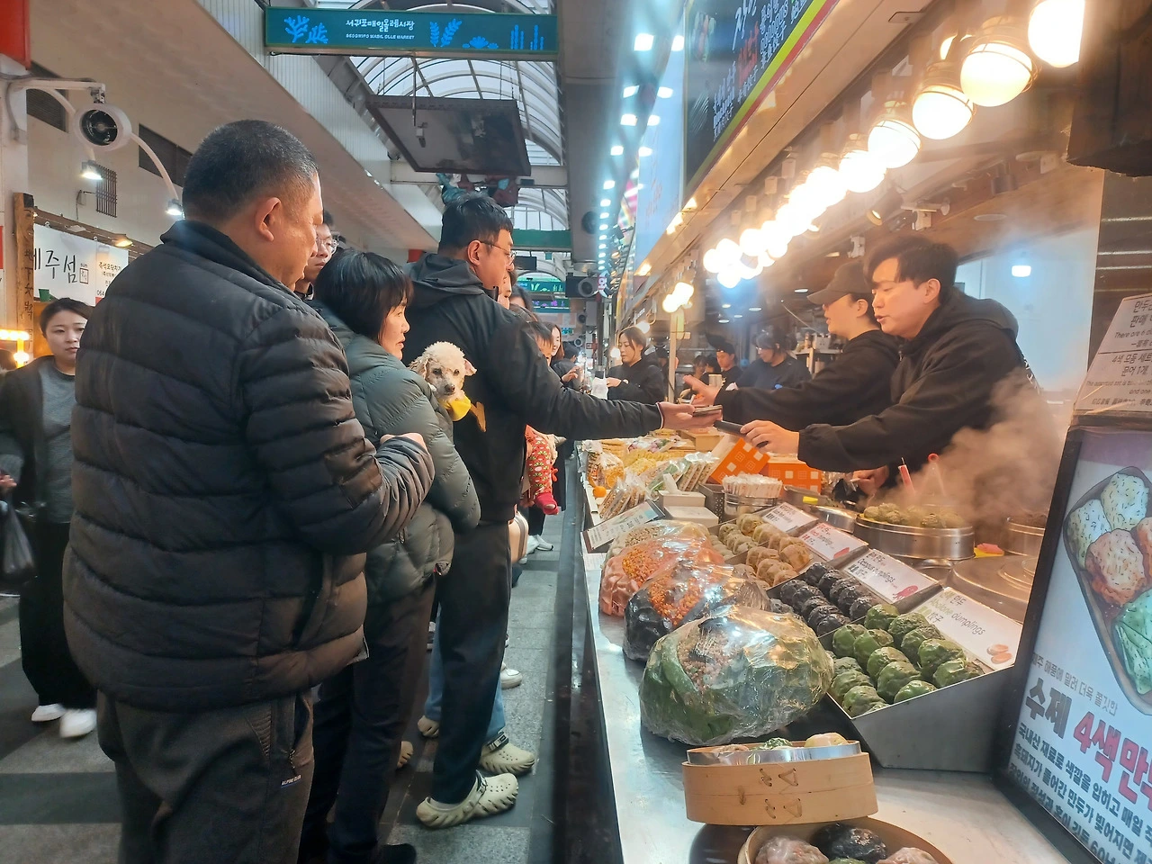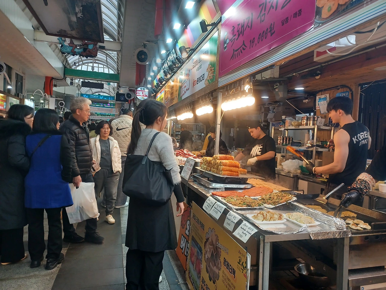 입구에 들어서자 명절을 앞둬서인지 기름 냄새와 생선 비린내, 떡 찌는 김이 한데 뒤섞였다.