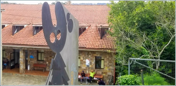 갈리시아는 공립알베르게 표식을 표주박 둘러맨 귀여운 고양이 아이콘으로 통일, 저 아래 알베르게 입구도 사진에 남겨둔다.