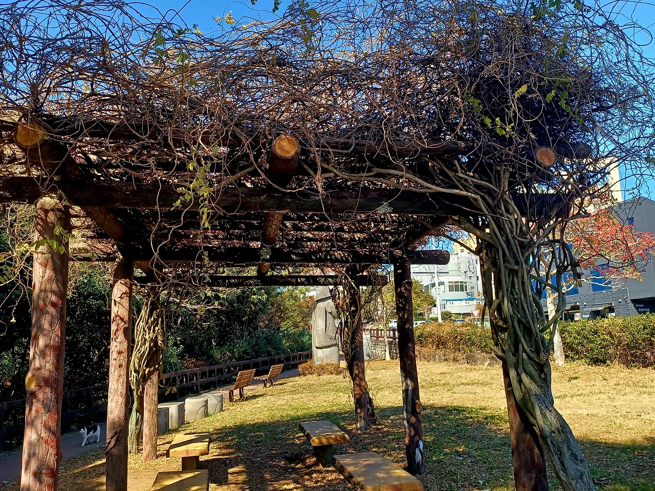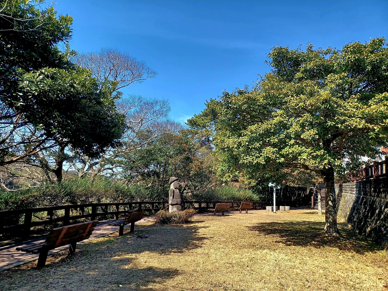 그 물 흘러서 서귀포항 바닷물과 합치기까지의 물길따라 나있는 높직한 언덕 위 숲에 샛기정공원은 자리했다.