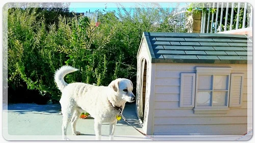 낮 동안만 새들 파수꾼 노릇을 시킬 생각이지만 햇볕을 피하게 집까지 바깥으로 옮겨다 놓았다.