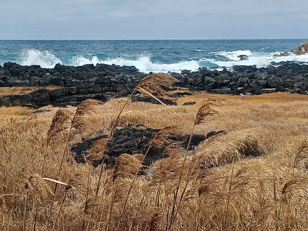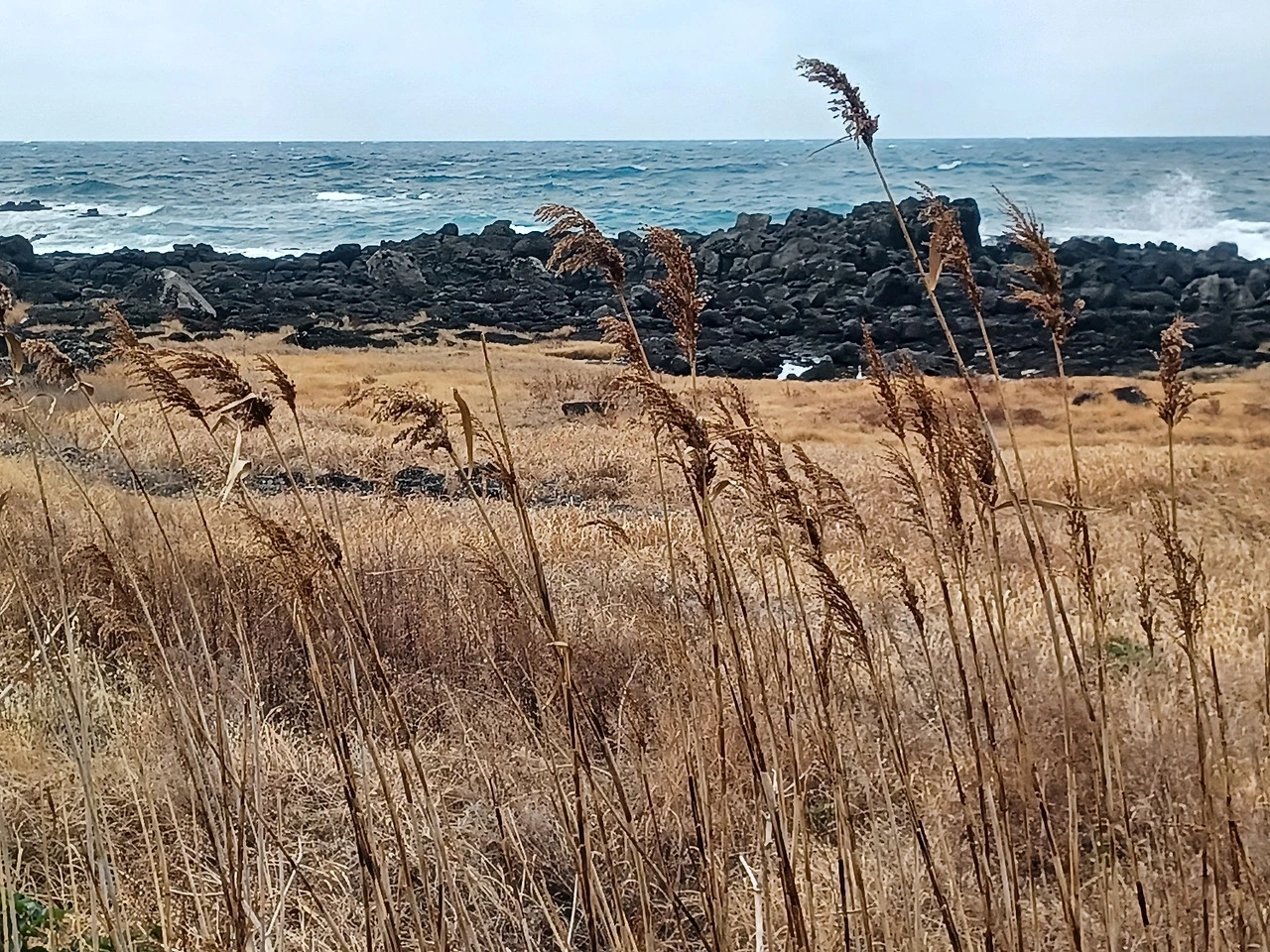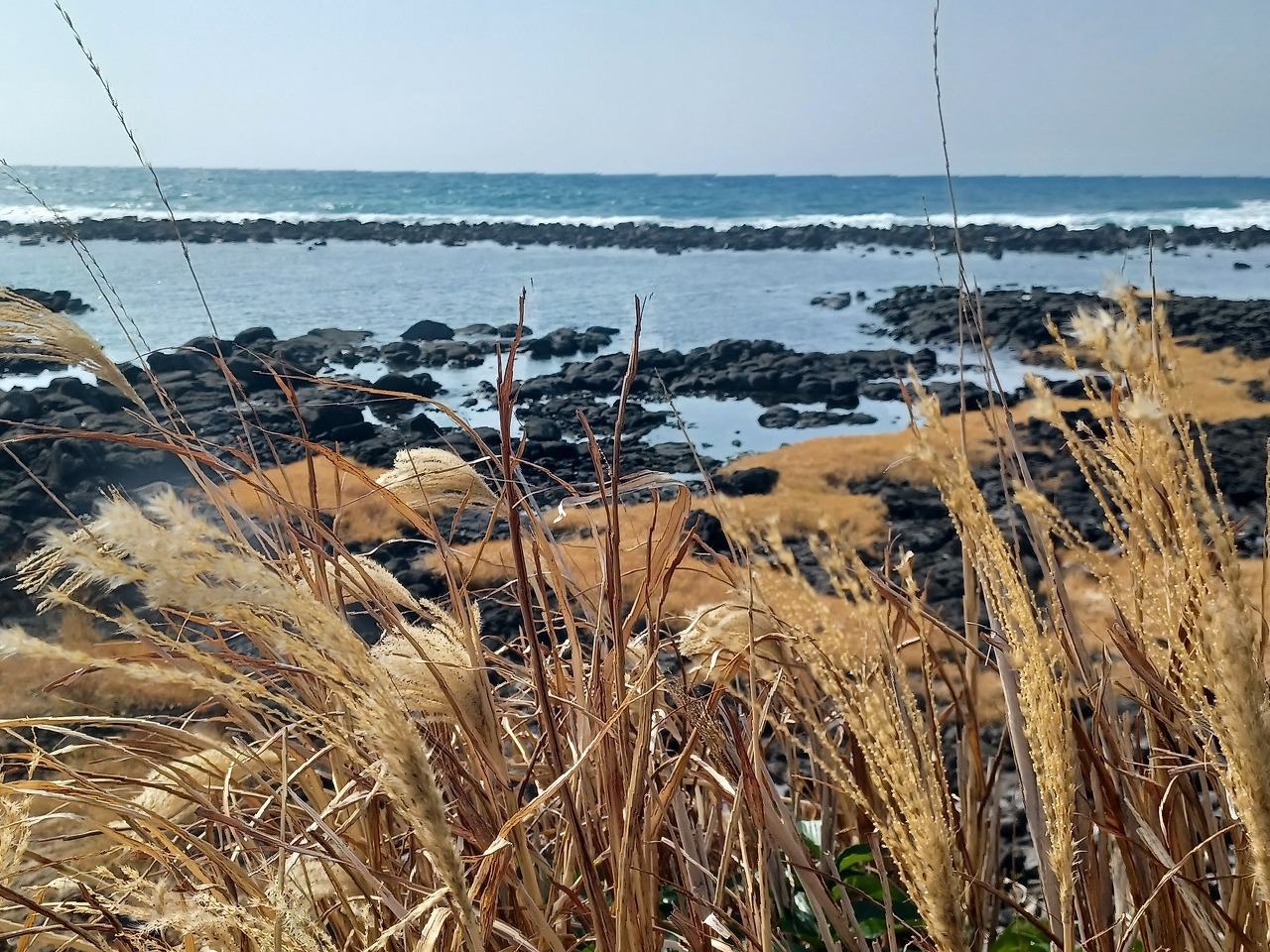 반반한 현무암 위에 뻘을 채워 바닷물을 가두었던 해안가는 무성한 갈대만 드러난 채 시퍼러이 출렁대는 바다 일색일 따름.