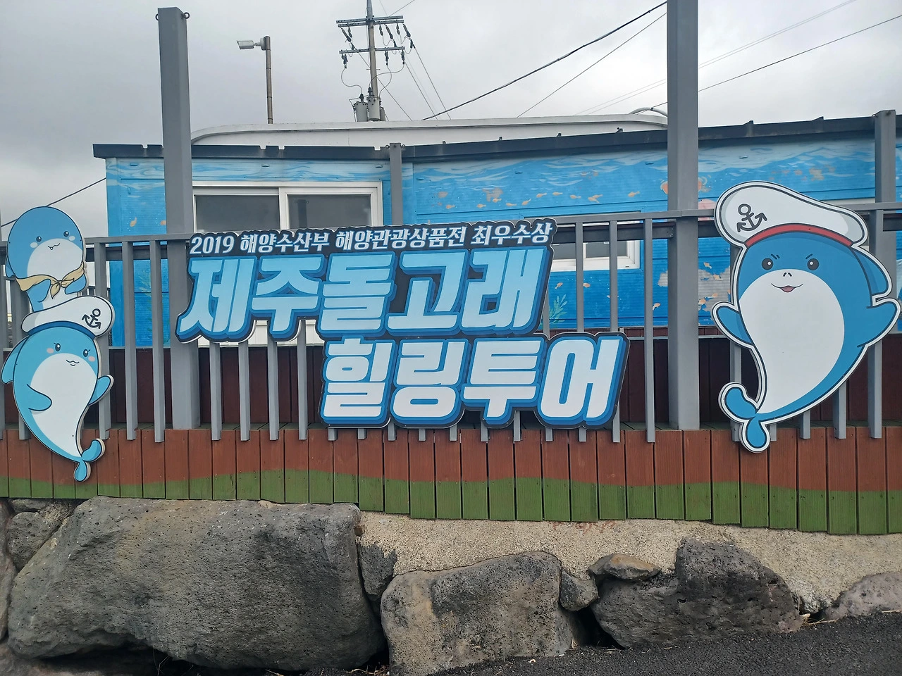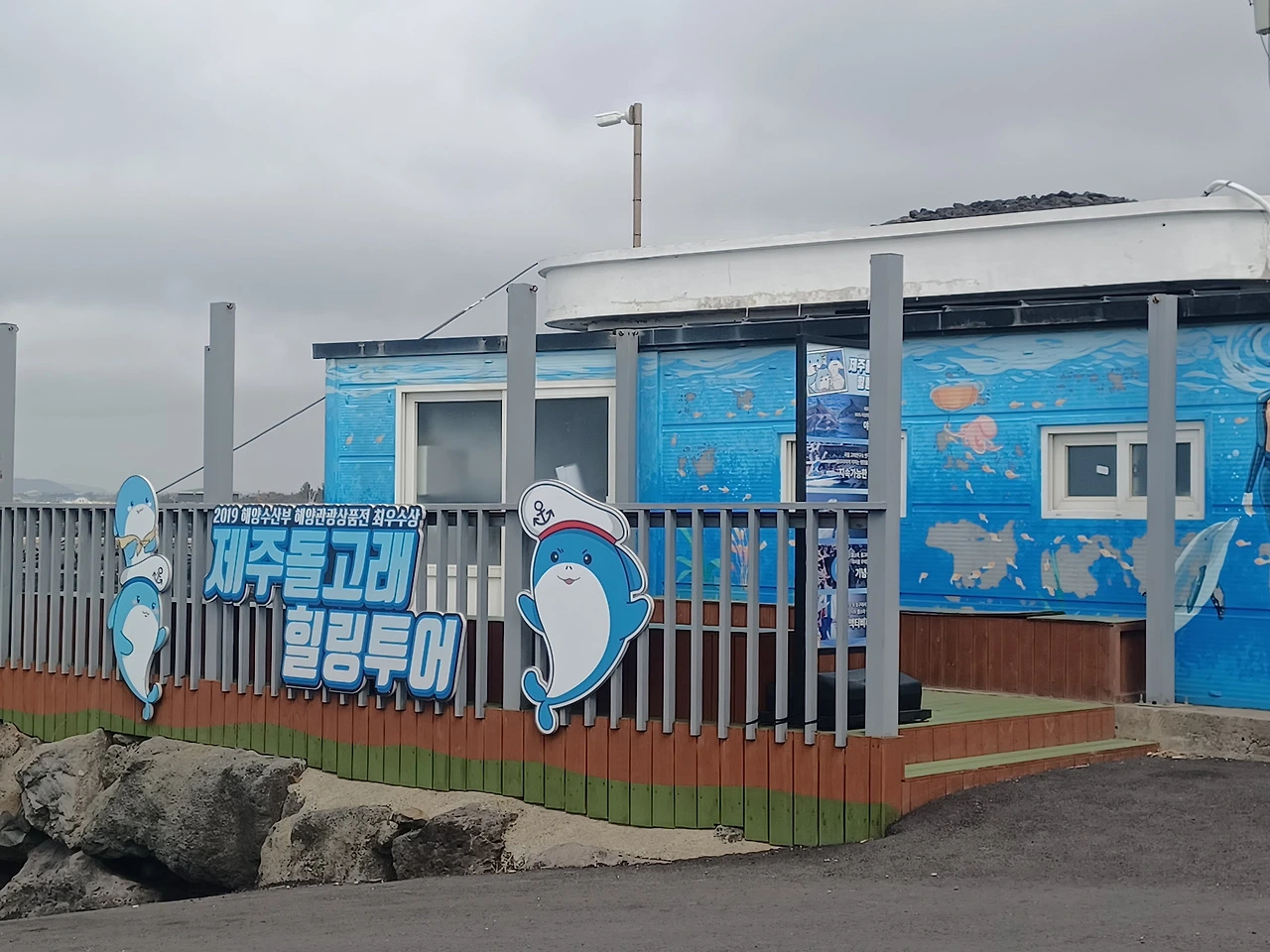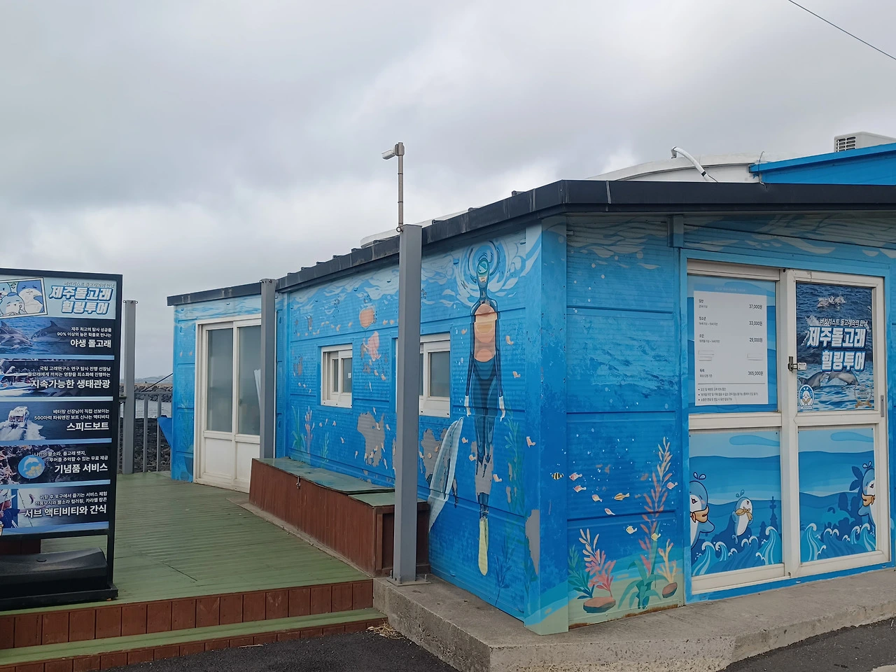 흠! 얄궂게도 마땅치 않게 여기는 돌고래 투어간판이 떡하니 내걸린 파란색 건물.