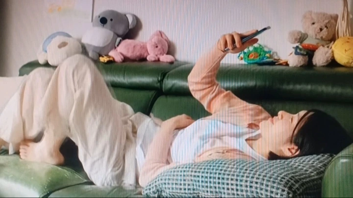 젊은 엄마는 아이가 커가는 장면 장면의 과정을 폰에 담아 저장한다.