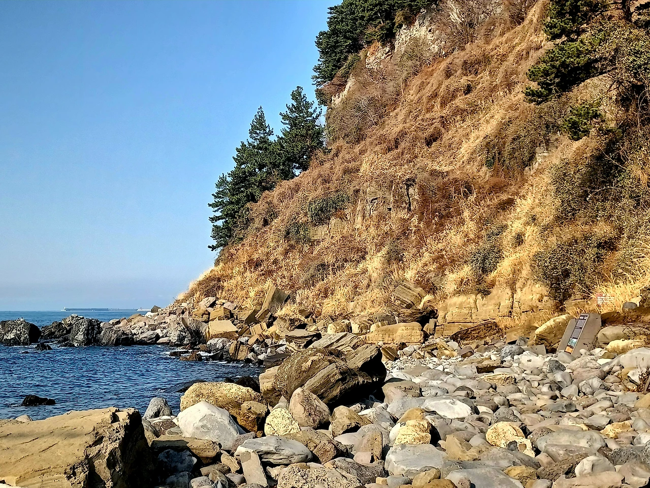 며칠 전부터 글감으로 궁굴려왔는데 바다빛 우중충해 날씨 맑길 기다리며 미뤄온 터였다.