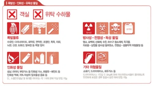항공기에 반입해선 안 되는 금지 물품이 있다는 건 알았지만 여태껏 별도로 신경 써본 적이 없었다. 하이재킹을 할 테러분자는커녕 소심하기 짝이 없는 평범한 소시민일 따름인 나. 따라서 비행기를 타며 휴대해선 안 되는 물품을 몰래 들고 가는 일 따위란 애당초 꿈도 꾸지 않을 테니까. 전에는 사실 직접 담은 파김치며 깻잎장아찌가 먹고 싶을 경우, 언니가 미국 올 때 사전 부탁을 해 음식 보따리 꿍쳐들고 오게도 했었다. 그러나 점점 탑승 규정이 강화되며 단속도 까탈스러워져 대부분은 짐 싸기 전에 금지품 체크부터 철저히 하게끔 변했다. 하지만 누구라도 본의 아니게 혹은 부지불식간에 큰 실수를 하는 수가 있는 데다 무식하면 용감하다 했던가. 경종 차원에서, 창피를 무릅쓰고 무지해서 범할 뻔한 내 실수담 고백을 하려 한다. 보조 배터리를 짐칸에 부치는 정도는 그나마 약과다.(2026년 현재는 한층 더 강화됐을 터)