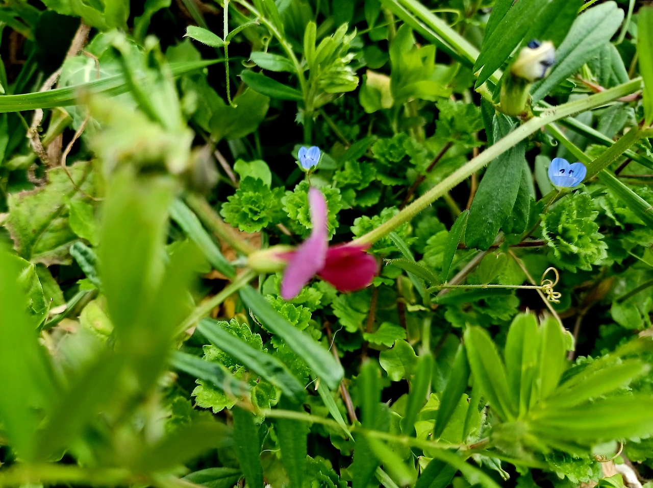 바로 옆자리에 연보라 반지꽃, 하얀 별꽃, 꽃분홍 광대꽃과 쇠갈퀴꽃, 연하늘색 봄까지꽃, 샛노랑 금화 같은 민들레꽃, 논두렁에 냉이꽃도 지천이었다.