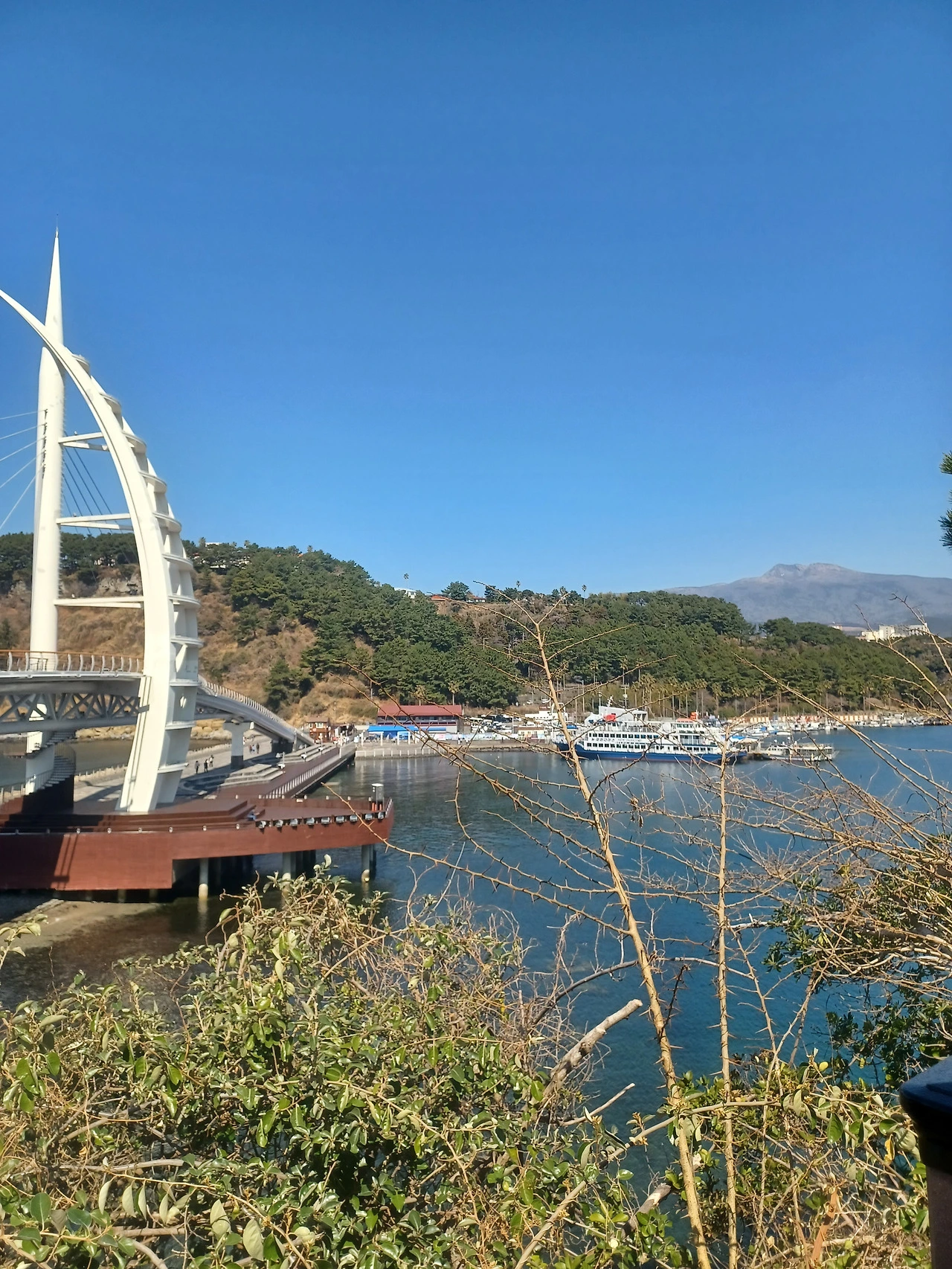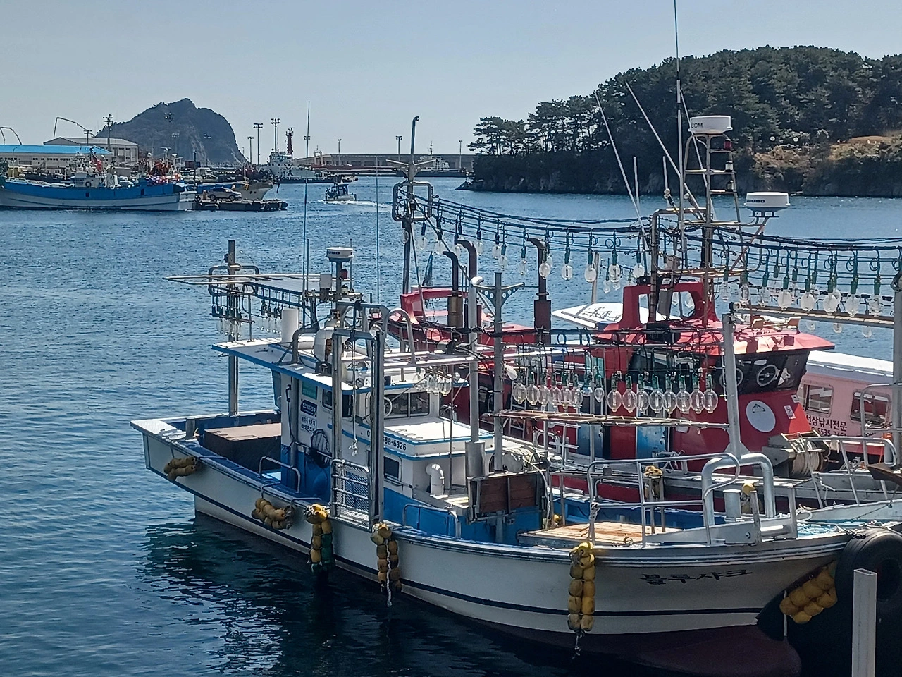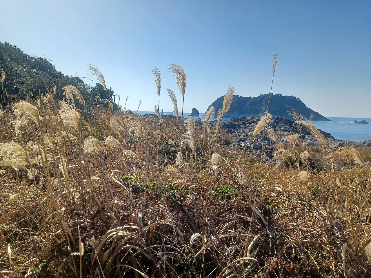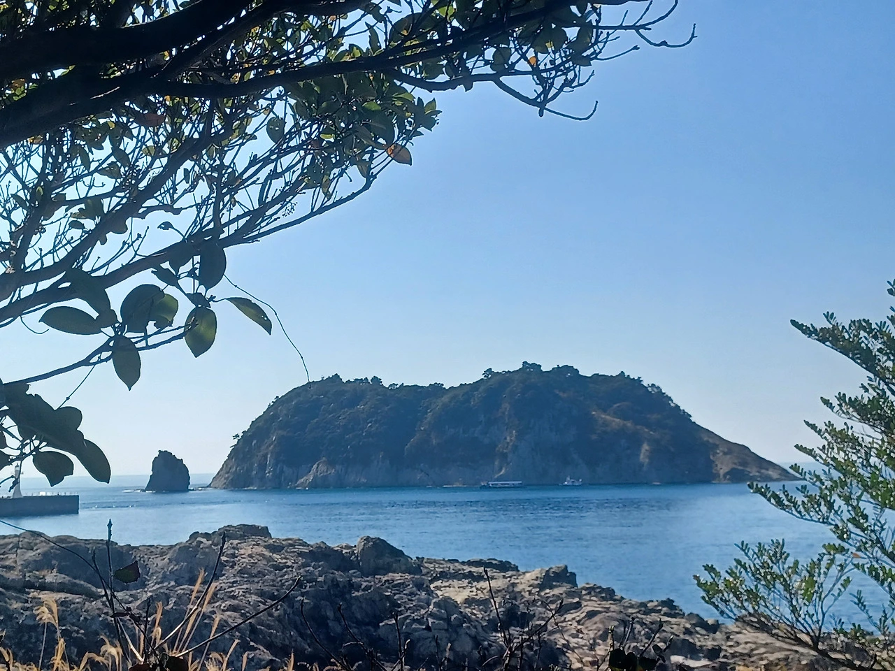 하얀 물굽이 굼실대는 청남빛 바다 건너 범섬 문섬 떠있고 숲에선 비비쫑 소리에 이어 호오익~ 해맑은 섬휘파람새 노래가 섞인다.