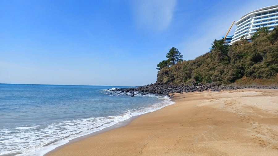 모래사장 그리 긴 편은 아니나 모래 둔덕 알맞게 깔아두었고 주상절리대와 해식동굴이 있는 쪽으로 나가면 곧장 주차장에 이르는 장점도 있다.