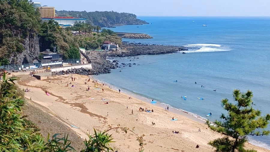 수질 환경조사 결과 전국 해수욕장 가운데 최고의 청정 해수욕장으로 인증받은 중문색달해수욕장.