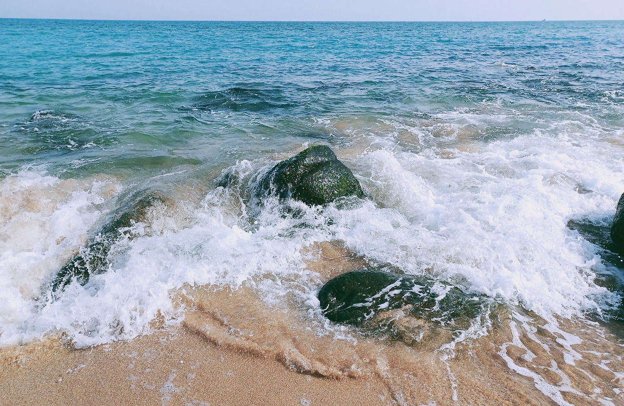 먼바다는 은가루 뿌린 양 아름다이 윤슬 빛나며 물굽이 연달아 일궈 해안으로 해안으로 크고 작은 파도 밀어 보낸다.