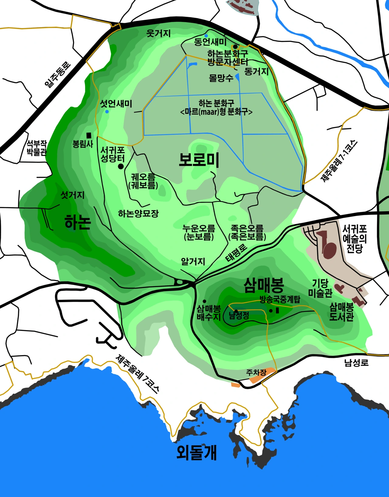 주로 서귀포 예술의 전당 맞은편 길로 진입해 수로를 따라 한논성당 옛터 방향으로 들어가곤 했다.