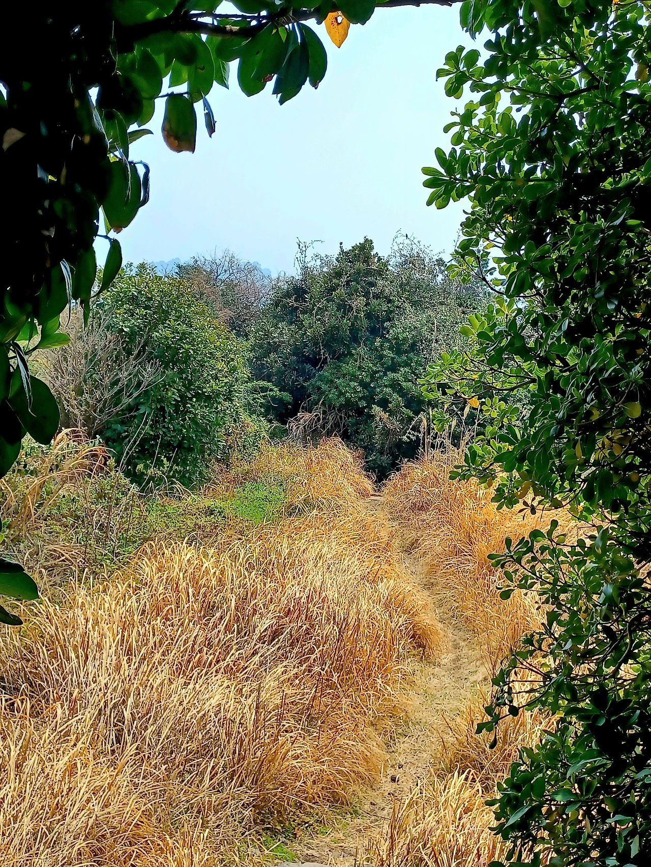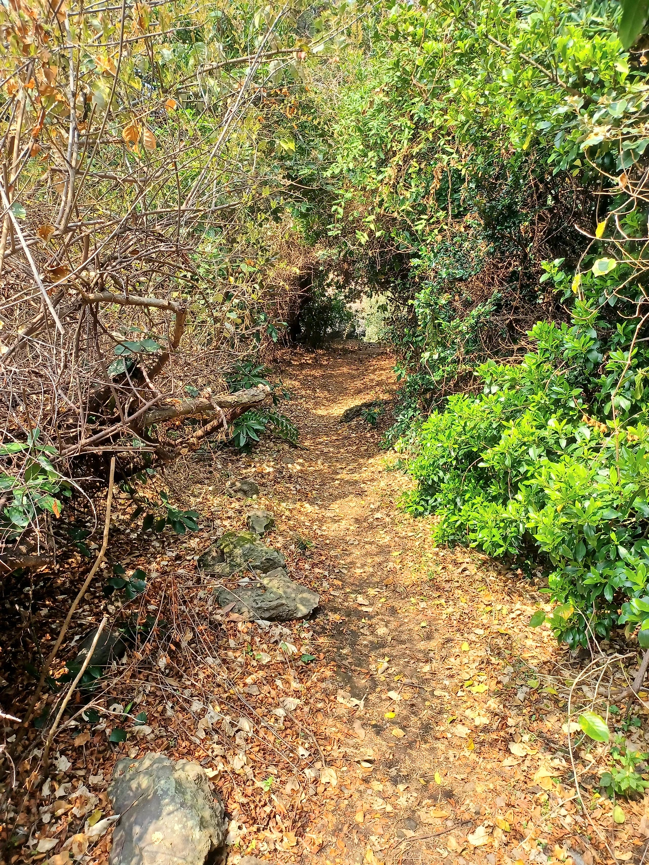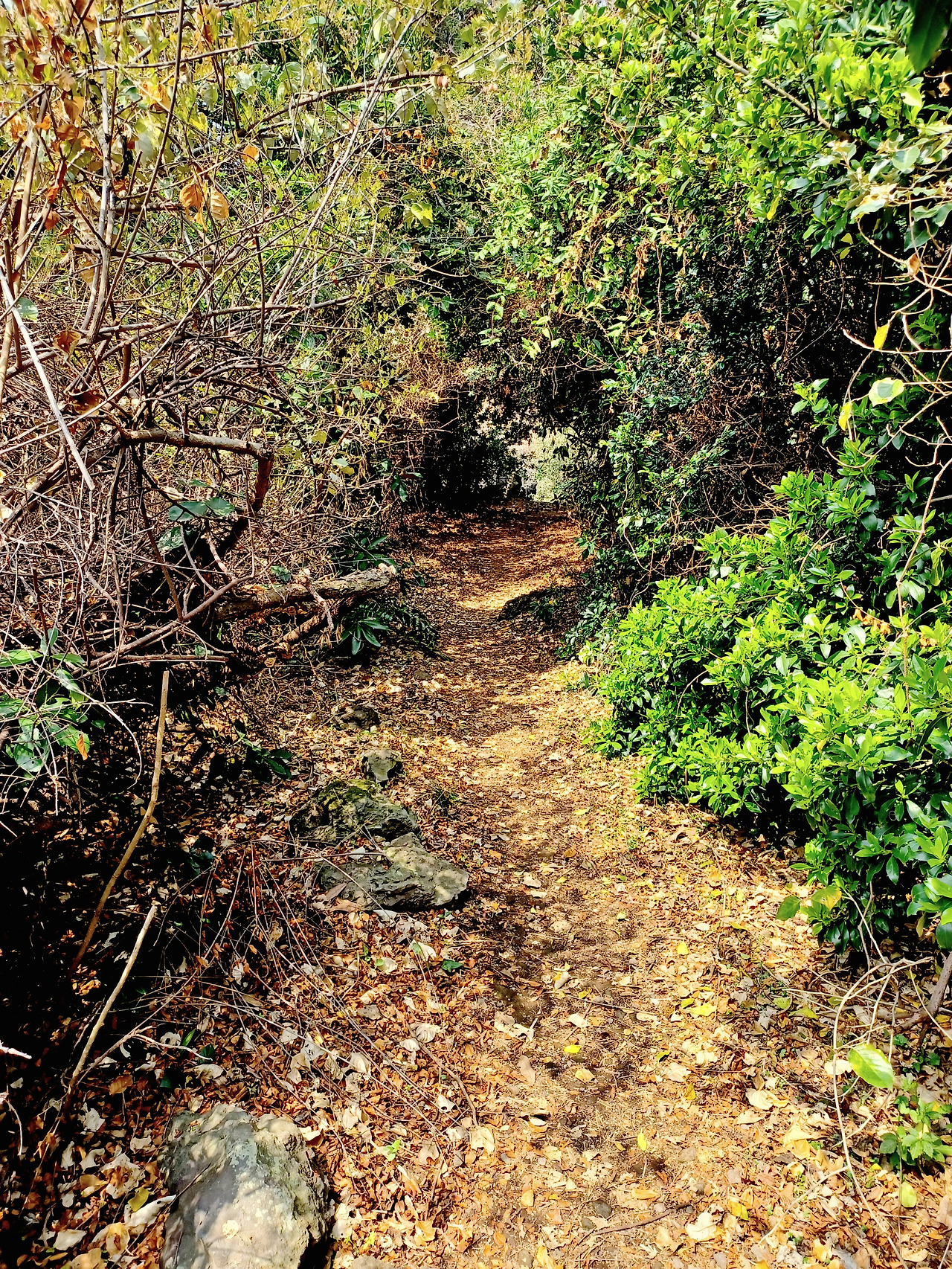 소나무, 우묵사스레피나무와 이름 모를 상록수를 비롯 덩굴식물이 얼크러진 숲은 거칠다.