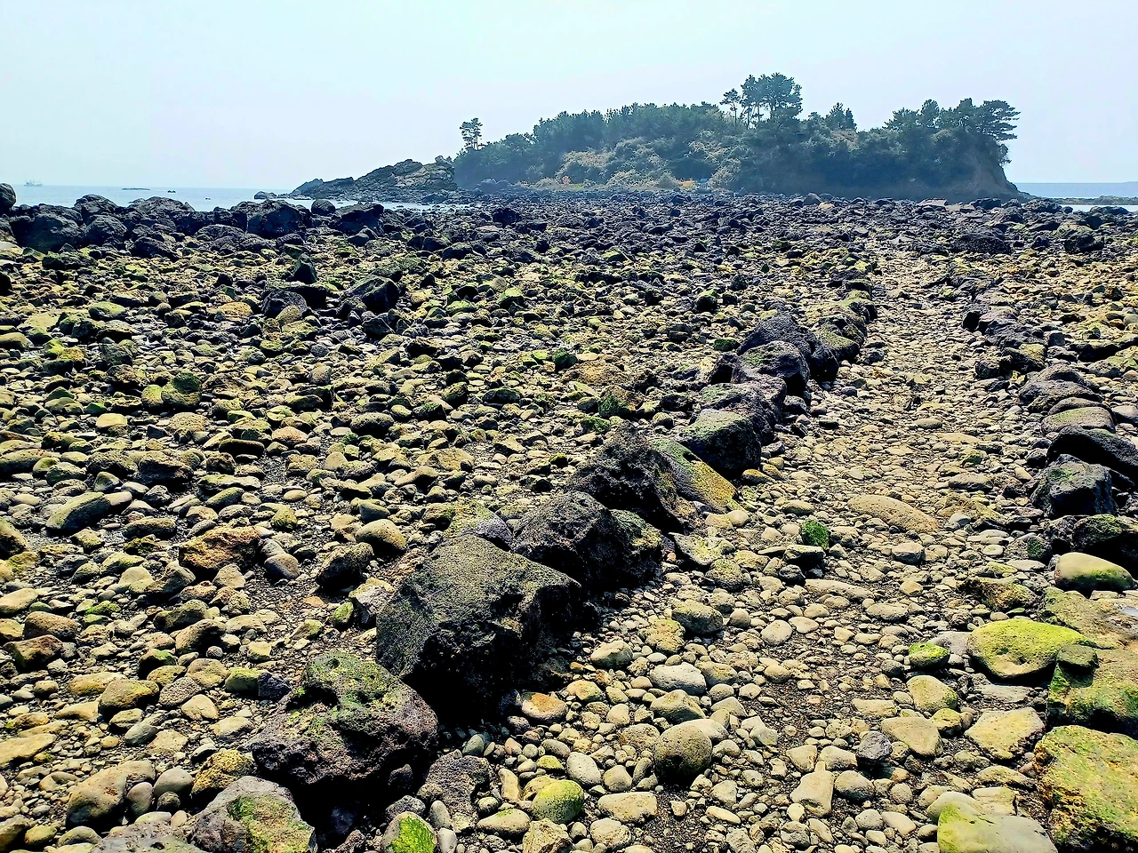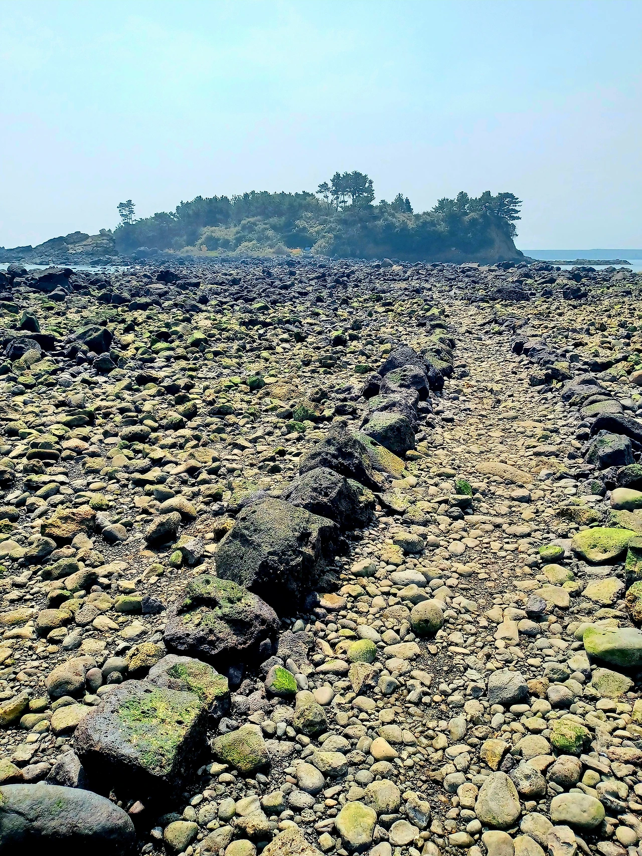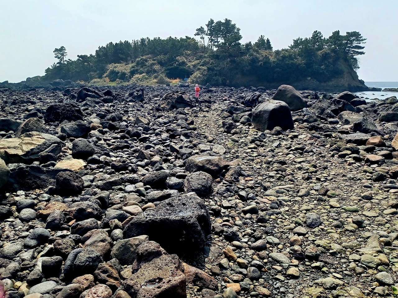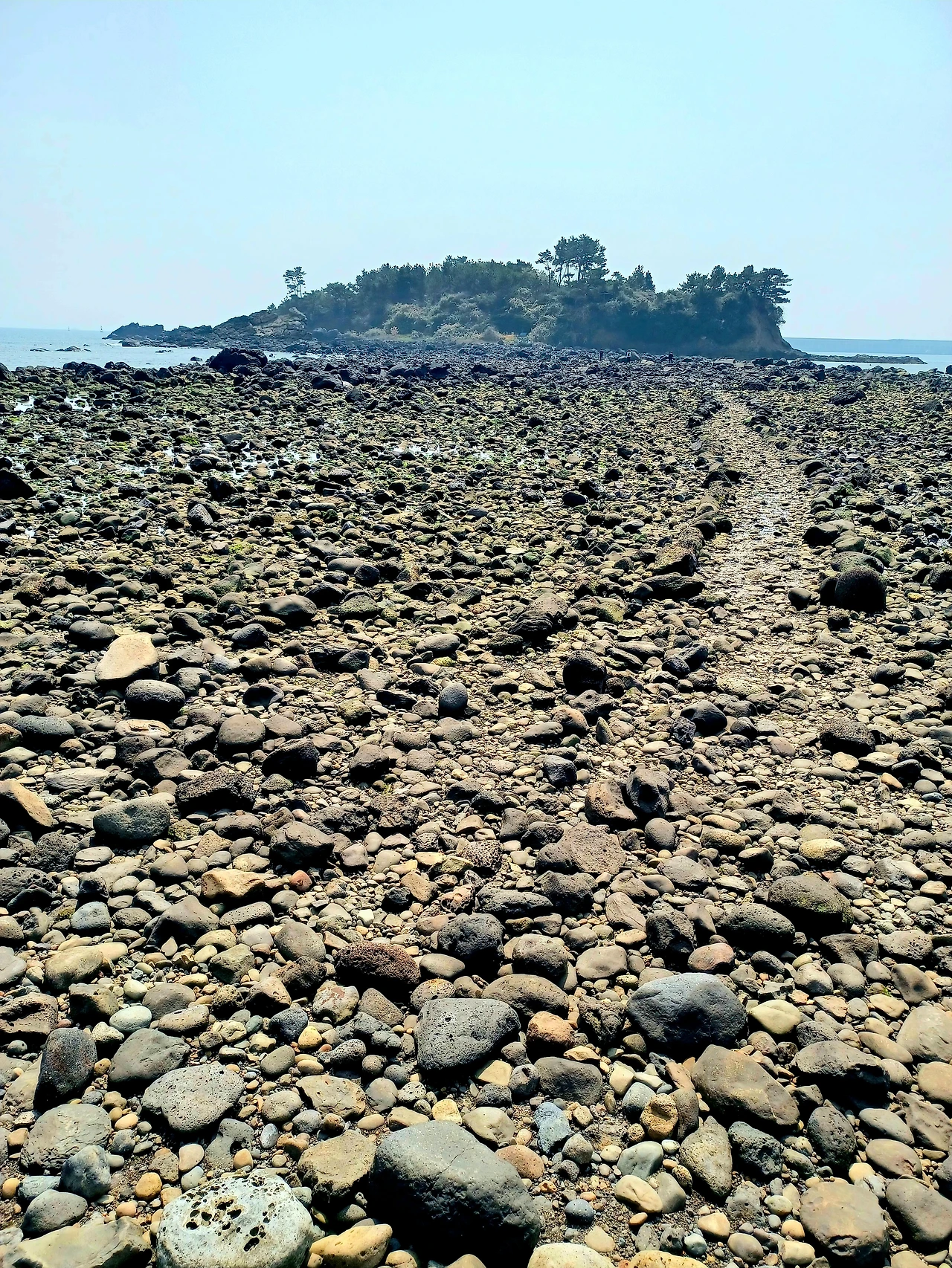 물기 하나도 없는 자갈길 따라서 섬에 이르렀다.