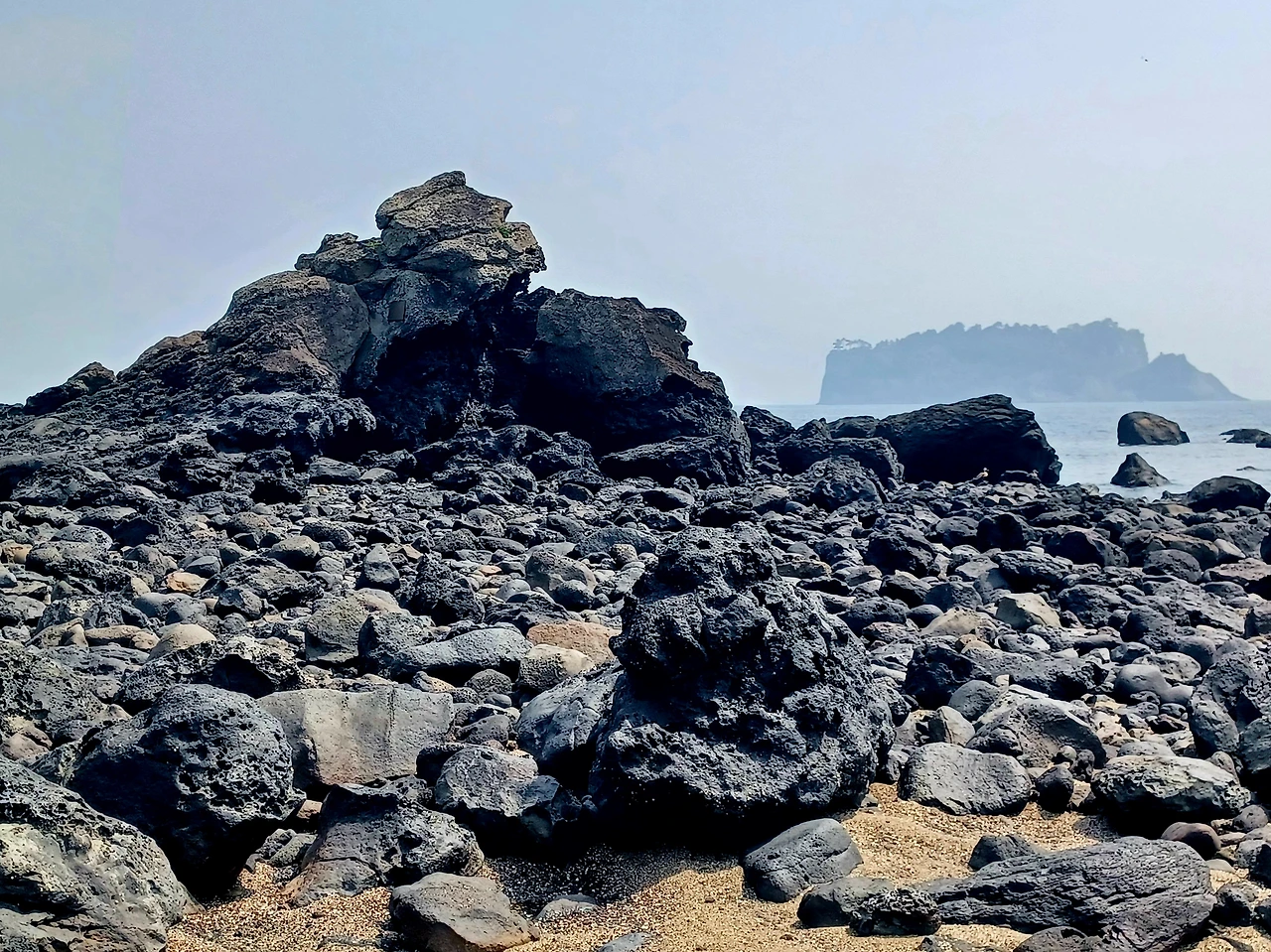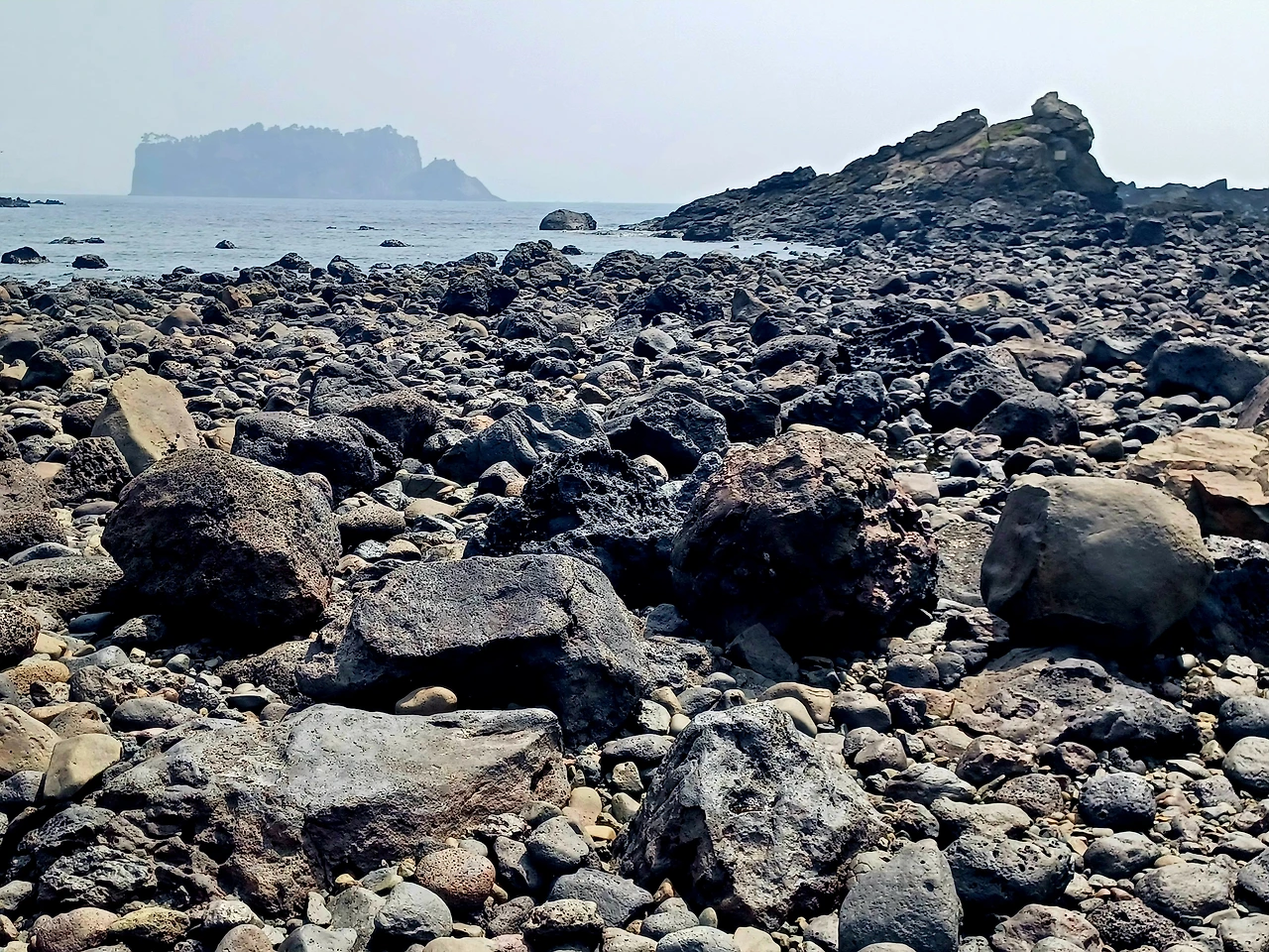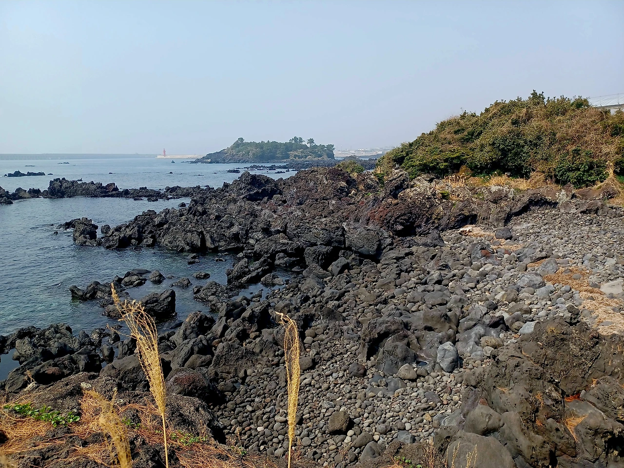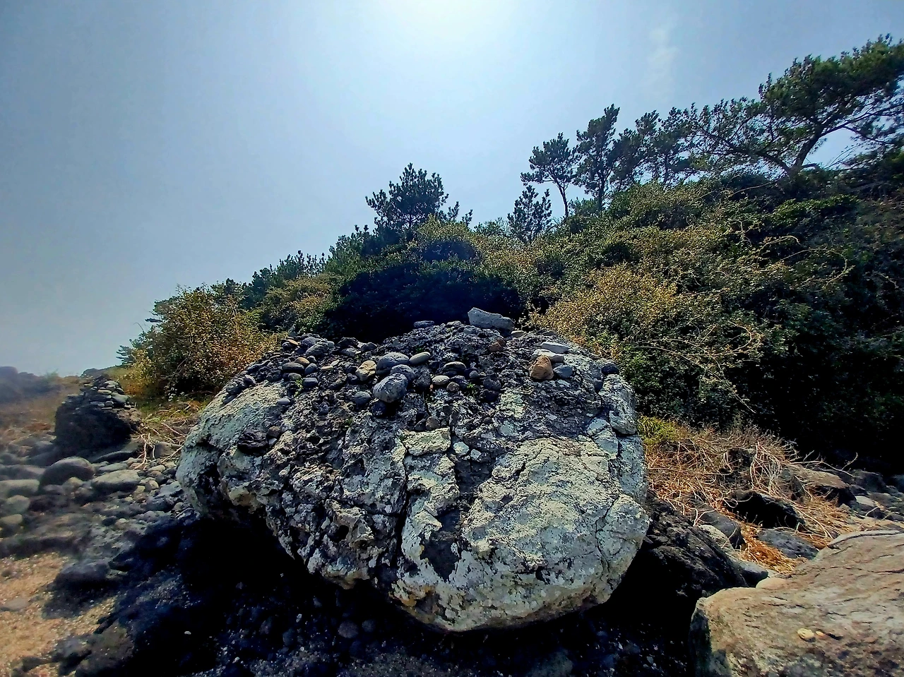 물기 하나도 없는 자갈길 따라서 섬에 이르렀다.