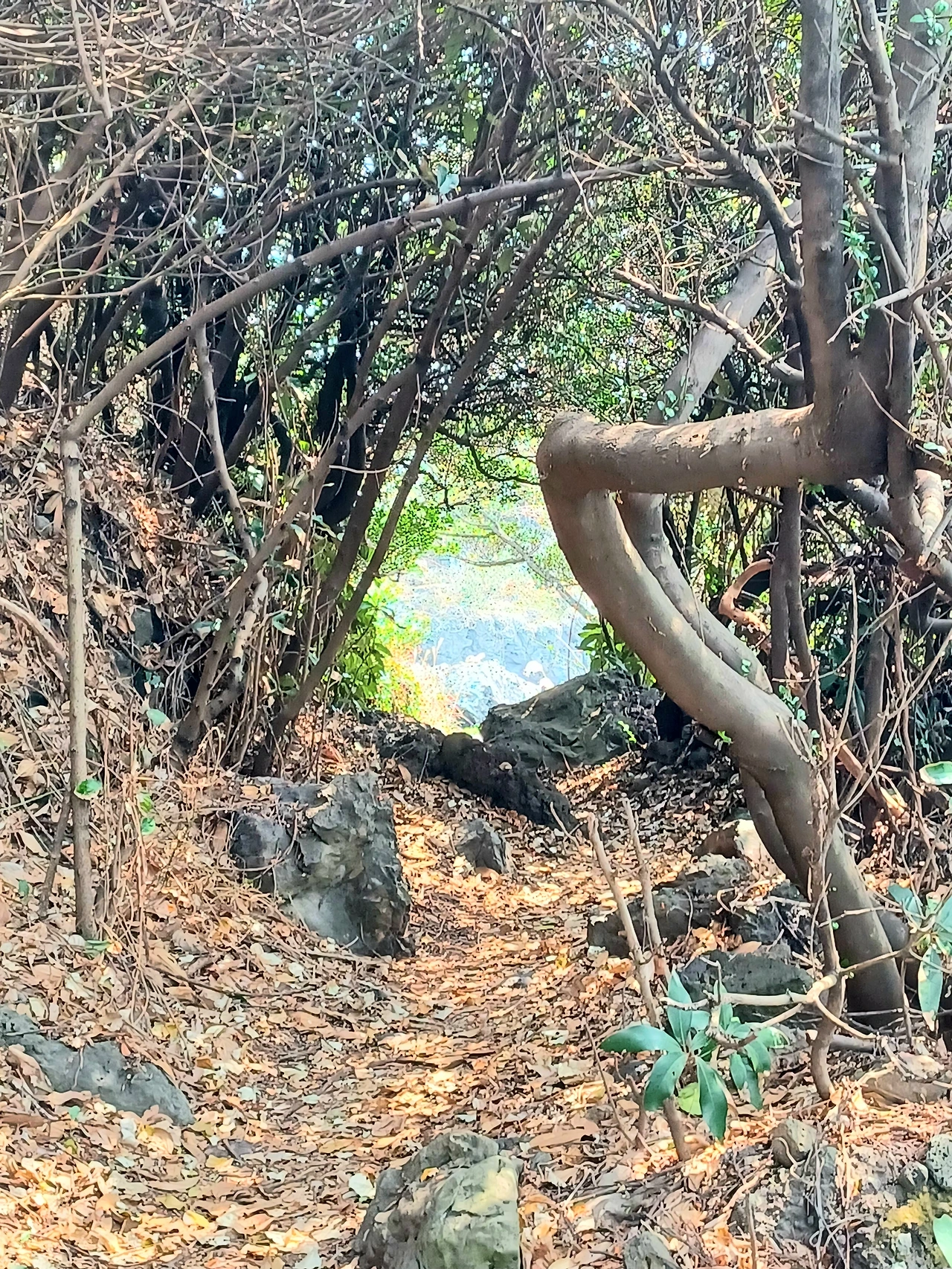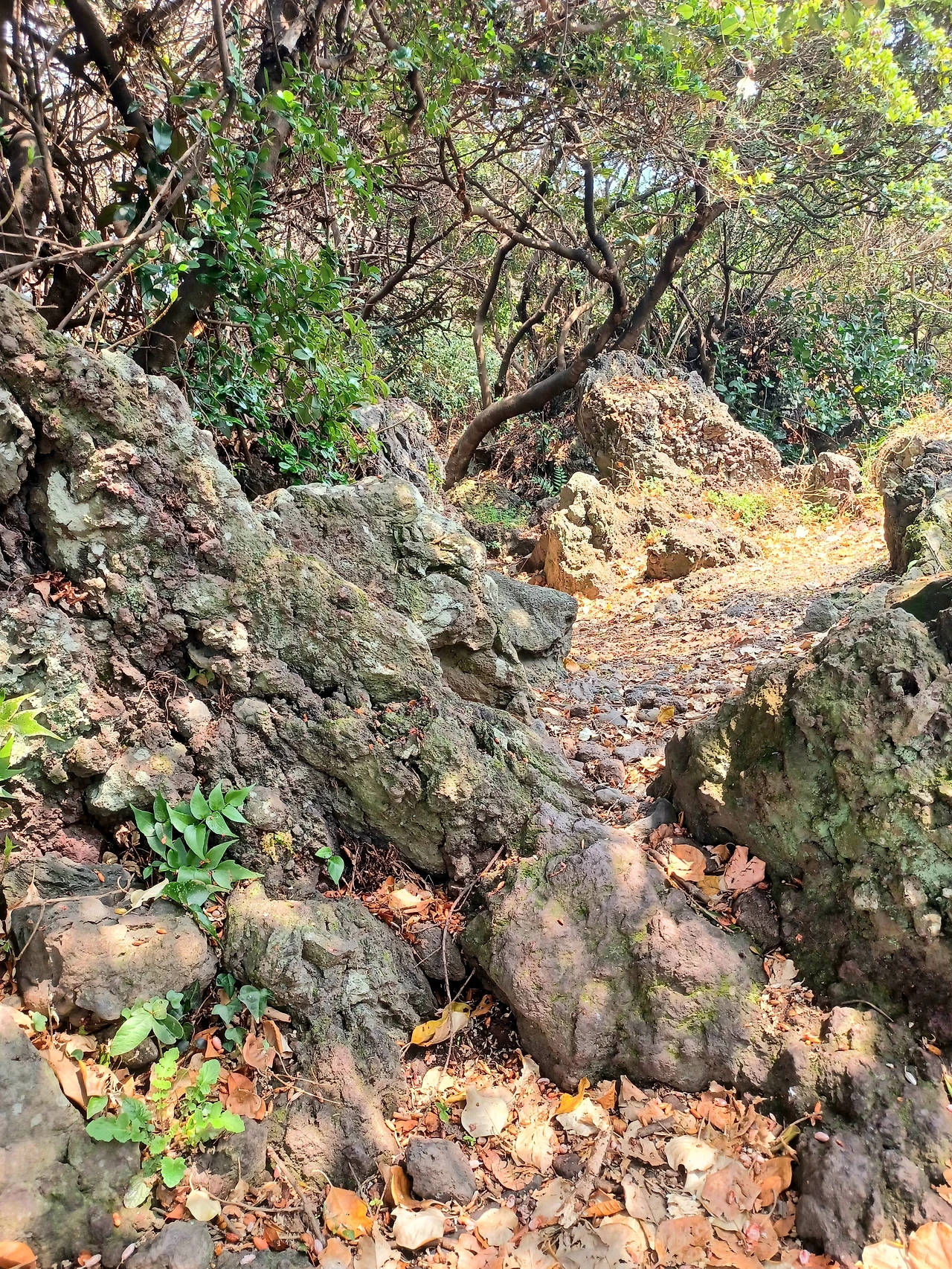 다시 숲길이 나오고 곶자왈처럼 덩굴 얼크러진 어둑신한 길, 혼자라면 무서워 전혀 내키지 않겠다.