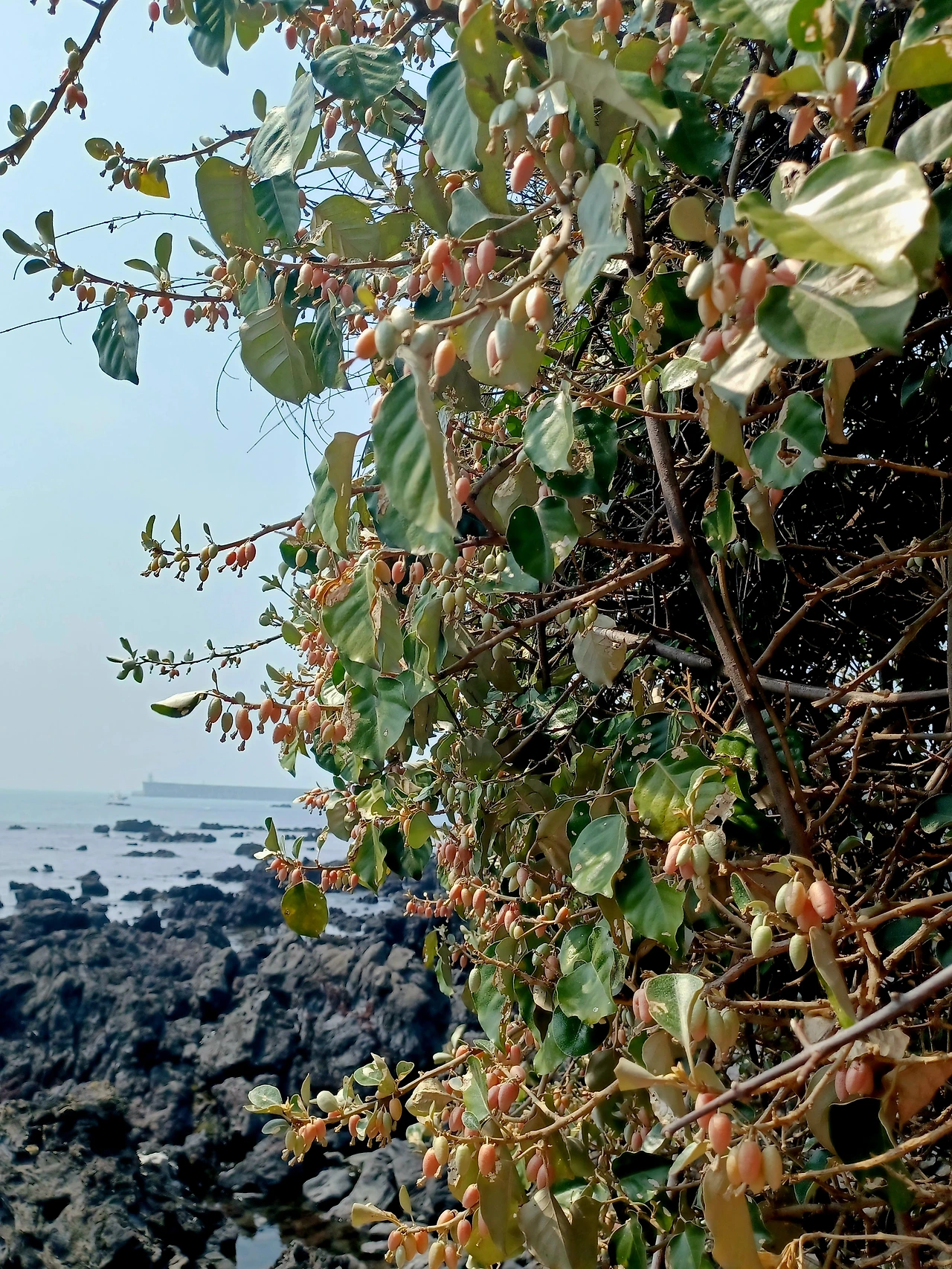 달콤 새큰 떫떠름한 보리수 열매의 유혹에서 벗어나 바윗길로 접어들자 이번엔 방석자리만큼씩 줄기 무성한 번행초가 기다렸다.