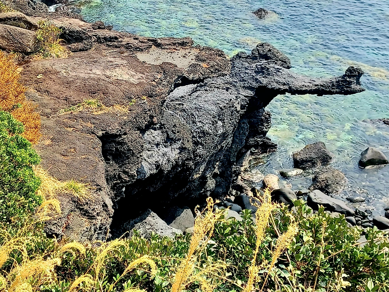금세 섬 한 바퀴 돌 수 있으나 동남쪽으로 트여있는 바위 아래로 내려가면 해안 절벽에 악어 머리로도 보이고 코끼리 코로도 보이는 조각같은 바위가 기다린다.