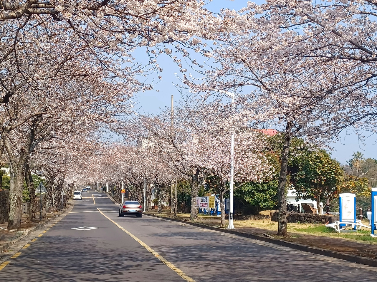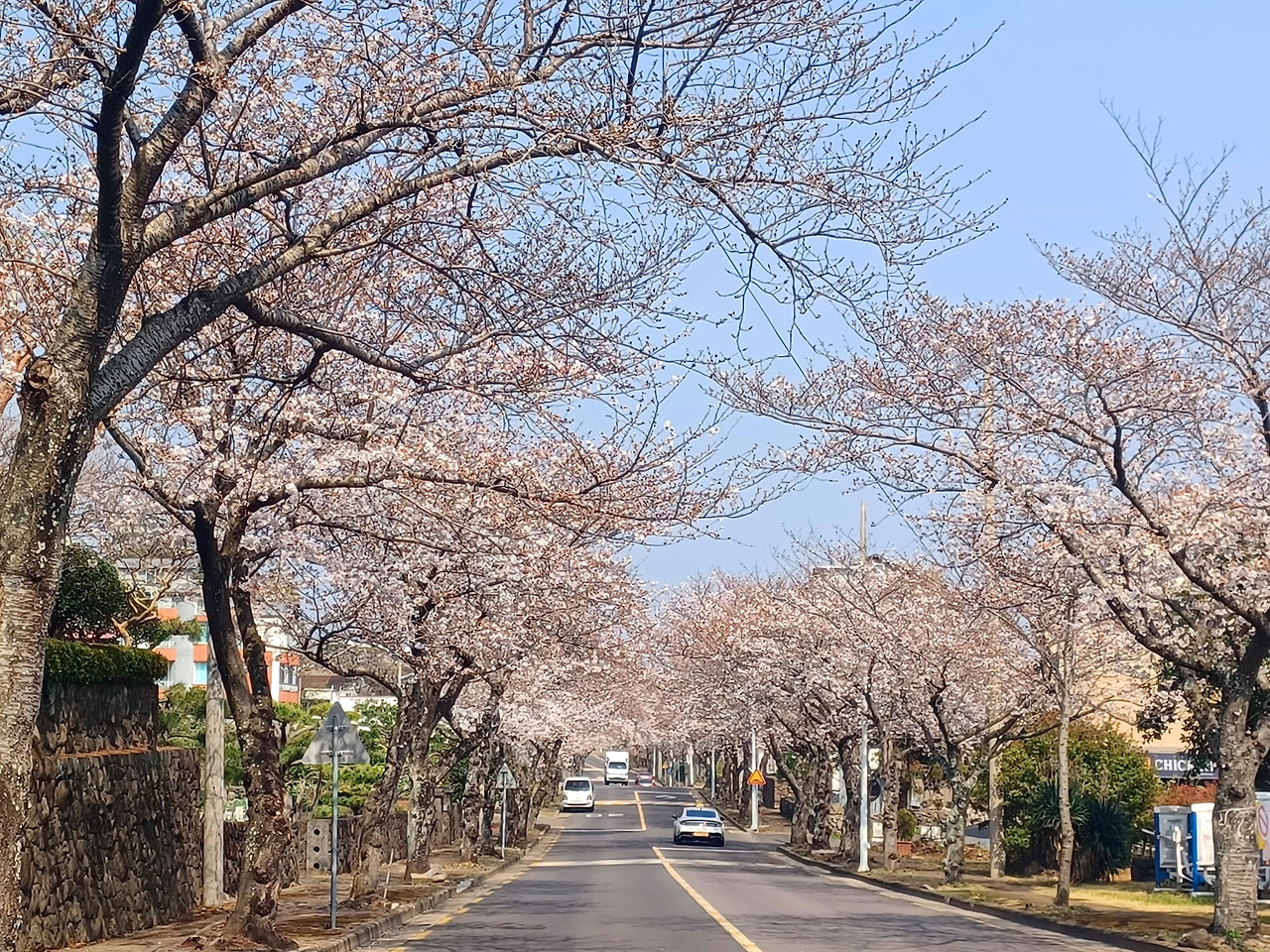 제주시 전농로 왕벚꽃거리, 제주대 벚꽃 터널길, 애월읍 장전리 벚꽃거리, 오라 CC입구 겹벚꽃 등.