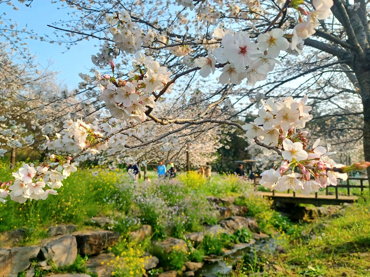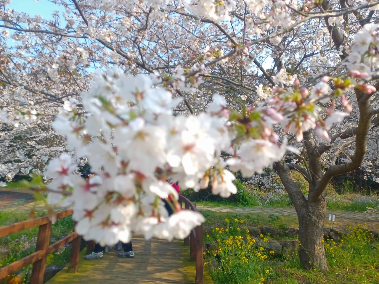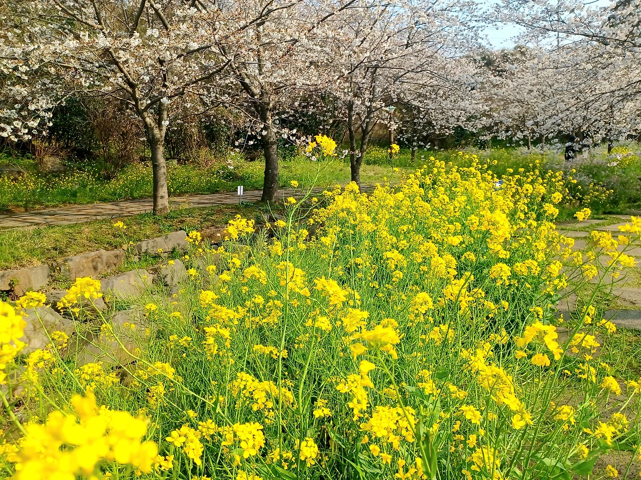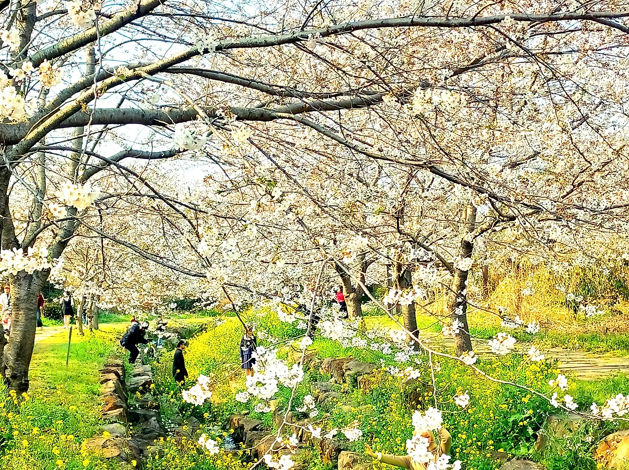 유채꽃과 벚꽃 개화기가 겹치는 시기라 가장 아름다운 꽃길만 걷게 되는 축복 같은 행운을 누릴 수 있다.