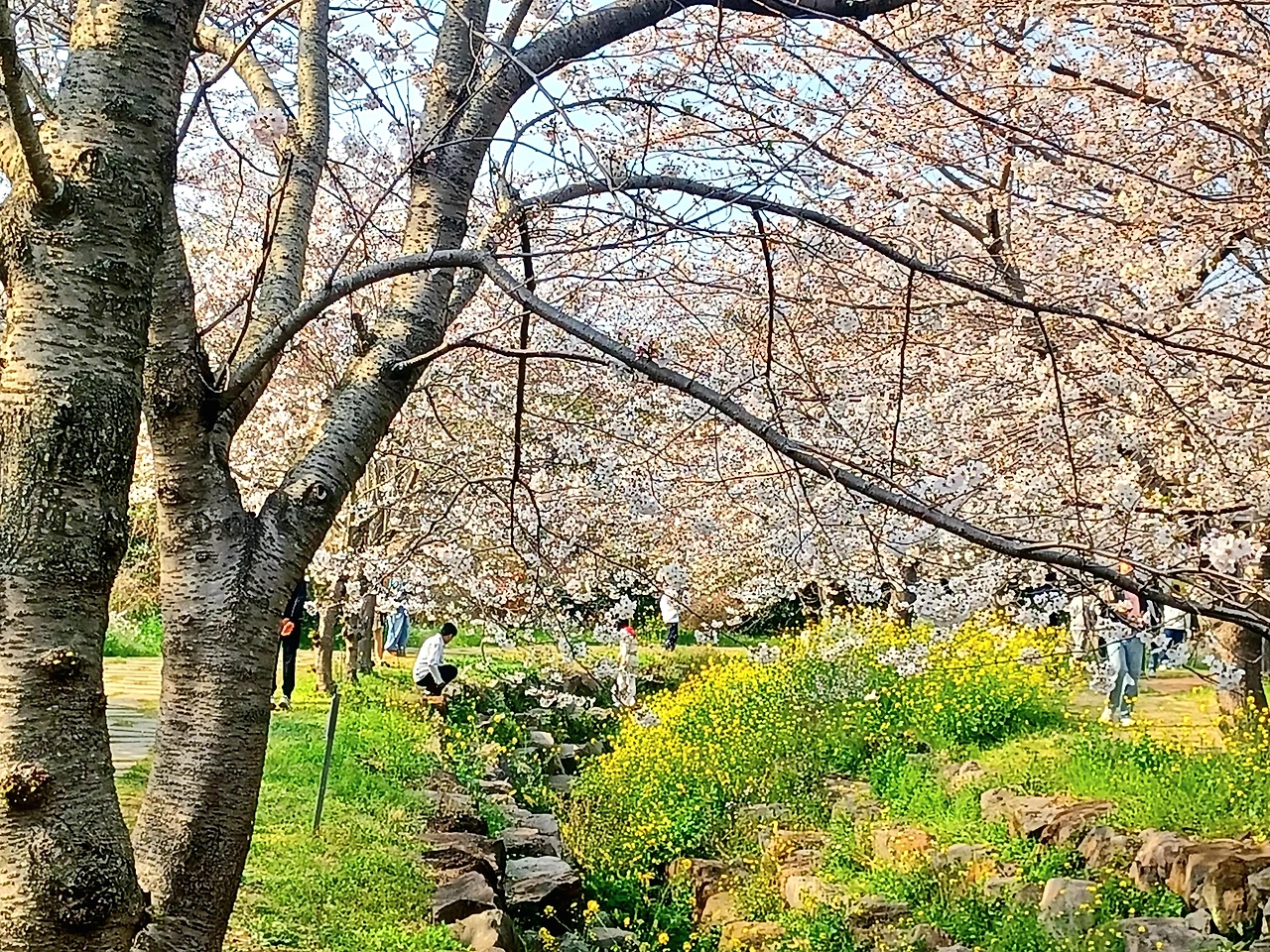 노란 유채꽃과 분홍 벚꽃이 어우러진 풍경은 그 자체로 유감없이 봄의 정점을 보여주었다.