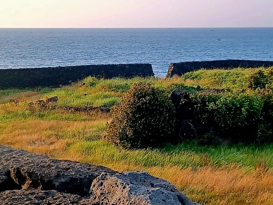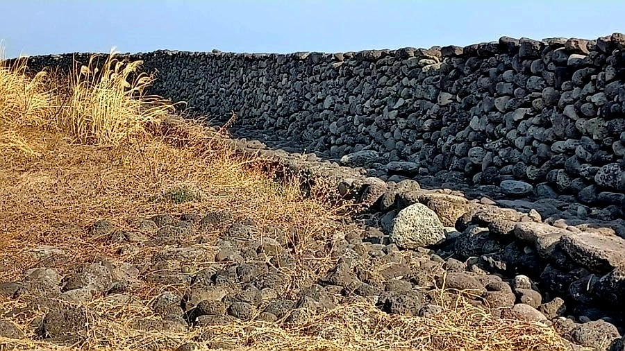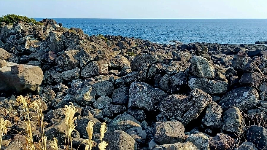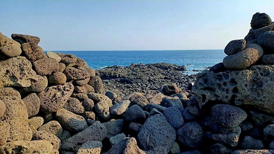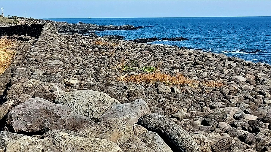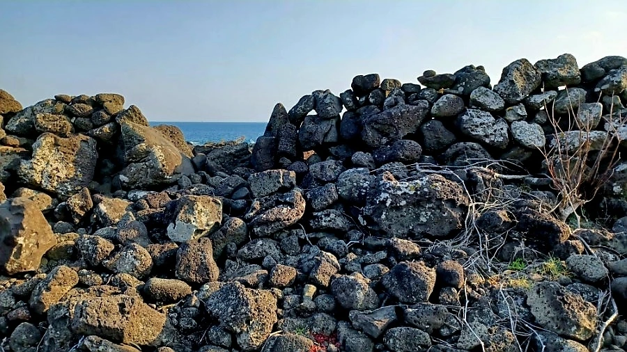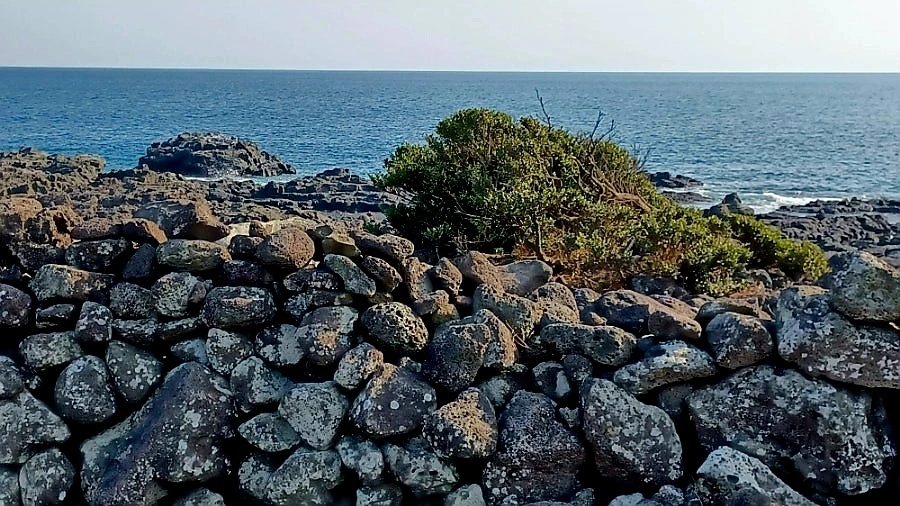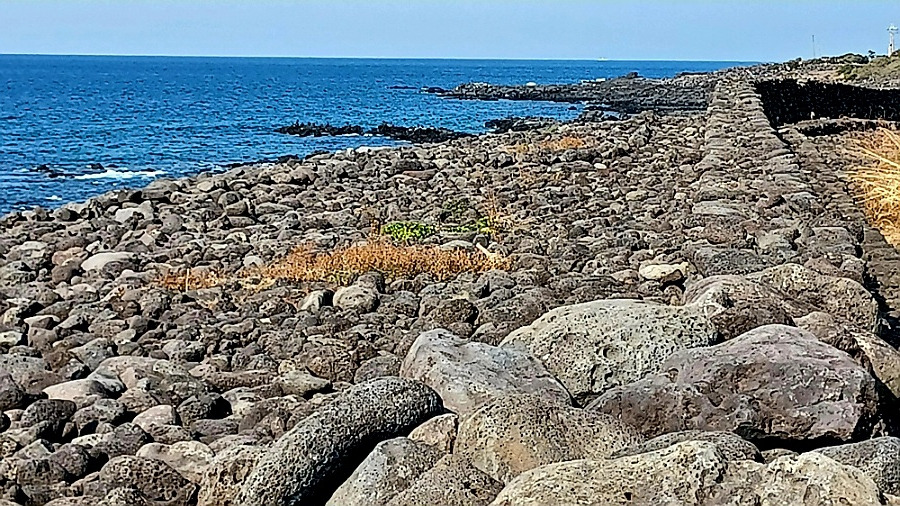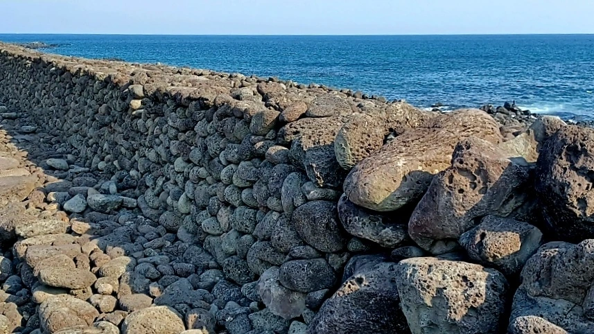 제주의 지난한 역사와 곤고한 삶을 돌로 기록한 환해장성. 외세의 침탈에 맞서 내 가족과 내 땅을 지키려 했던 그 집념의 기록이, 이제는 세월의 이끼를 입은 채 제주인의 굳건한 정신으로 혈맥마다에서 맥박치고 있다. 그렇게 쌓아 올린 것은 비단 거친 현무암 덩어리만이 아니었을 터다. 그것은 척박한 땅을 일구며 살아남아야 했던 이들의 절박한 생존 의지였고, 거센 바닷바람 속에서도 끝내 굴복하지 않았던 제주인의 단단한 마음이었다. 오늘날 푸른 바다를 배경으로 끊길 듯 이어진 환해장성은, 그 옛날 뜨거운 땀방울로 빚어낸 거대한 '삶의 성채이자 요새'로 남아 우리를 경책 하고 있다. 환해장성은 단순히 적을 막아내는 석벽이 아니라, 위기 앞에 하나로 뭉쳤던 제주 공동체의 원형이다. 수백 년이 지난 지금도 흩어지지 않고 자리를 지키는 저 석축 앞에서, 우리는 지켜내야 할 것을 위해 기꺼이 자신을 내던졌던 윗대들의 시퍼런 기개를 다시금 일깨워낸다. 바닷가 빙 둘러 가며 쌓았다는 환해장성의 흔적을 더듬기 위해서 제주 외곽 여기저기를 돌아다녔다. 그러나 곤흘 애월 등 아직 미처 못 둘러본 장소도 있다. 해서 다시금 올해 한바퀴 더 섬을 돌아볼 생각이다.
