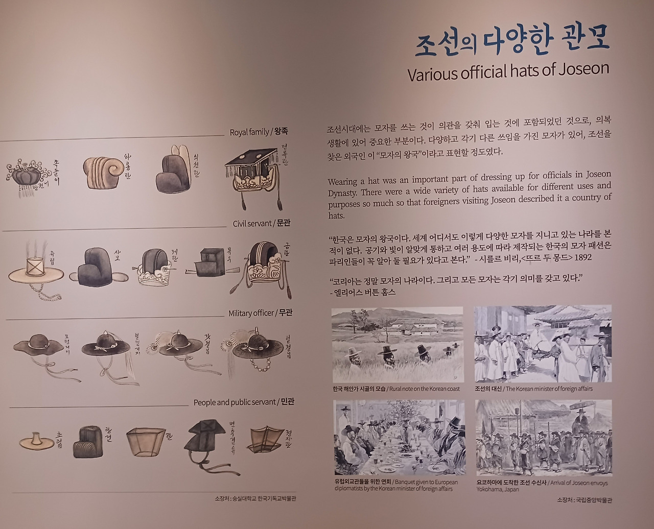 모자의 니라, 조선 코너에서는 QR코드로 들어가면 일일이 각개 모자에 따른 상세한 설명이 따른다.