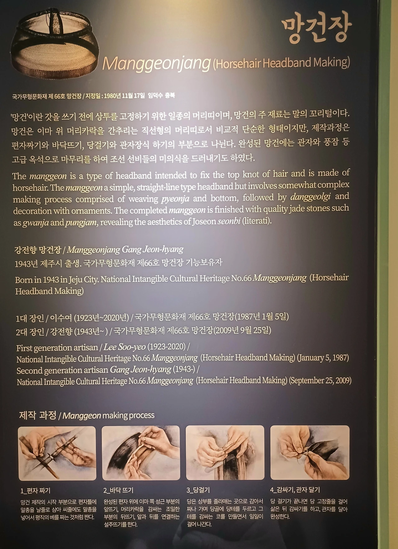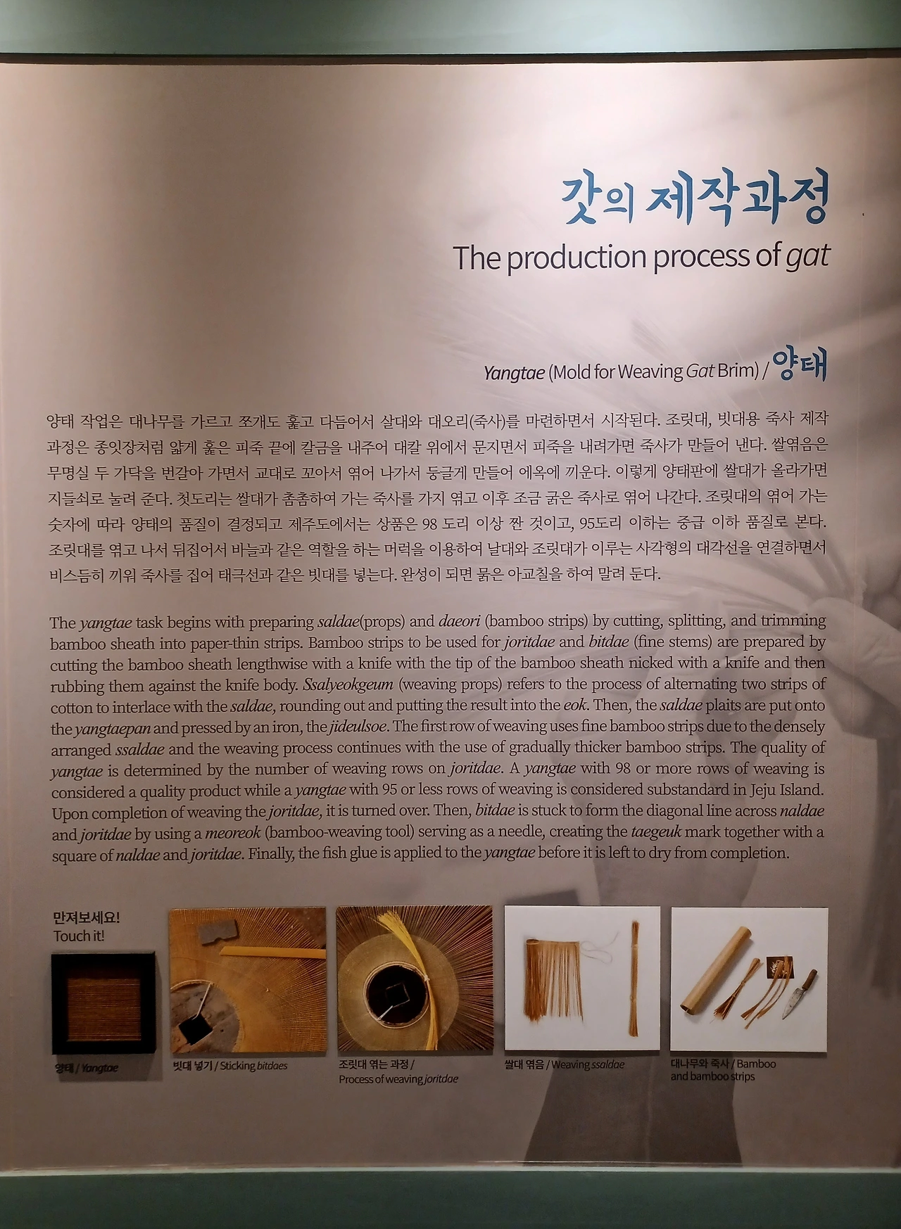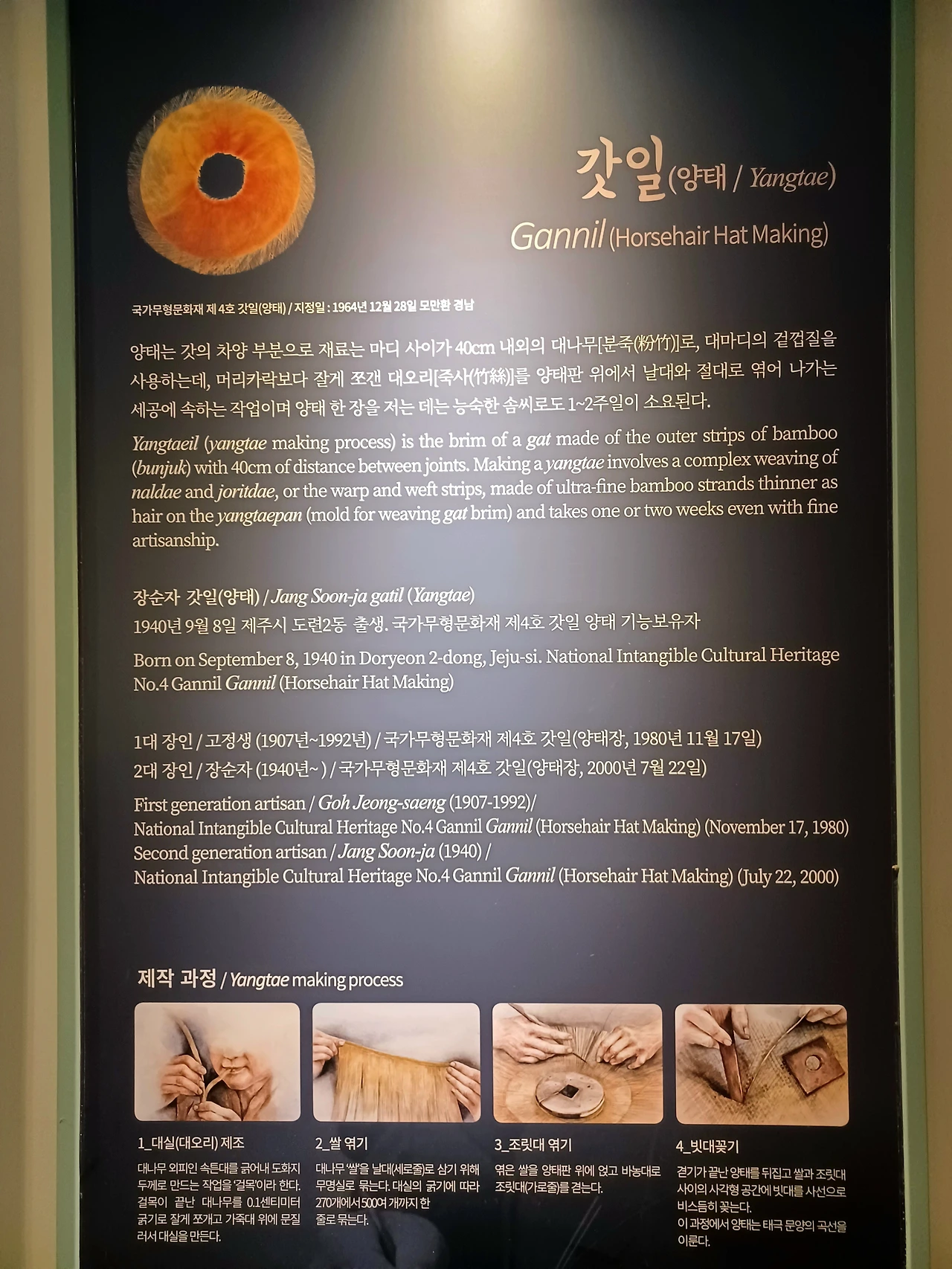 섬세하고 정교한 수작품인 갓을 만드는 양태장이 제주에 있다는 것도 여기 와서 비로소 알았다.