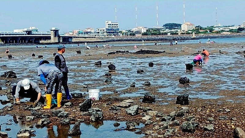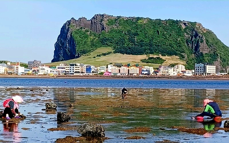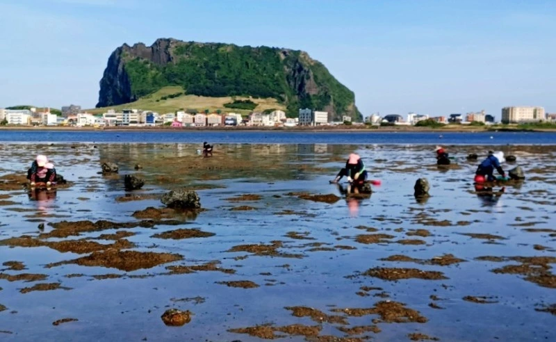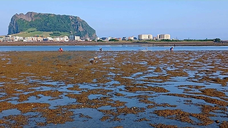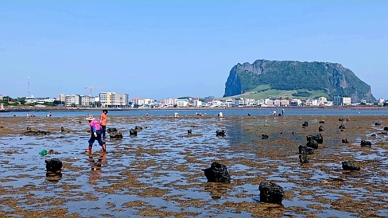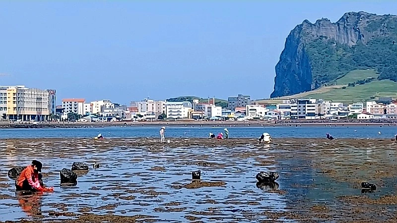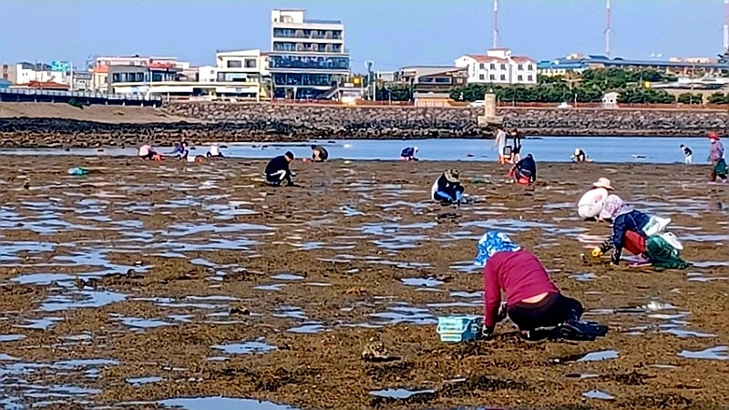 성산포 오조리에서 바지락 캐기