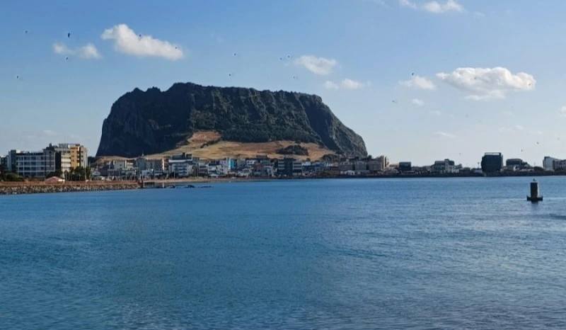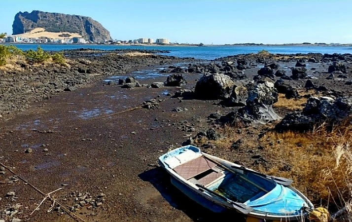 버스가 일출봉 앞을 스쳐 오조리로 가는 도중, 순간 목적지가 바뀌었다.