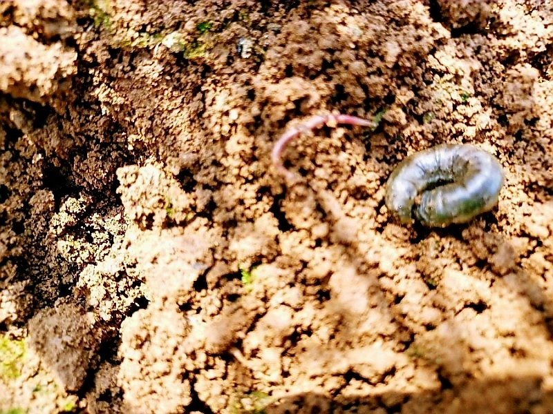 굼벵이처럼 생긴 큰 벌레도 흙 속에서 꿈지럭대며 기어 나왔고요.