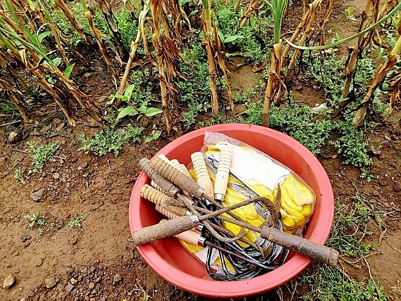 곧장 목장갑과 골갱이(호미) 및 작업방석을 챙겨 마늘 캘 채비를 마치고 밭으로 들어갔답니다.