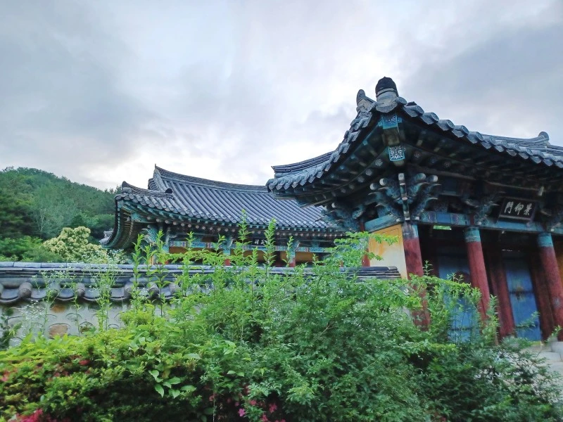 입구에 홍살문이 마음결 경건히 가다듬게 하더니 석교 아래 연못 무성한 연잎이 청정심을 절로 불러일으킨다.