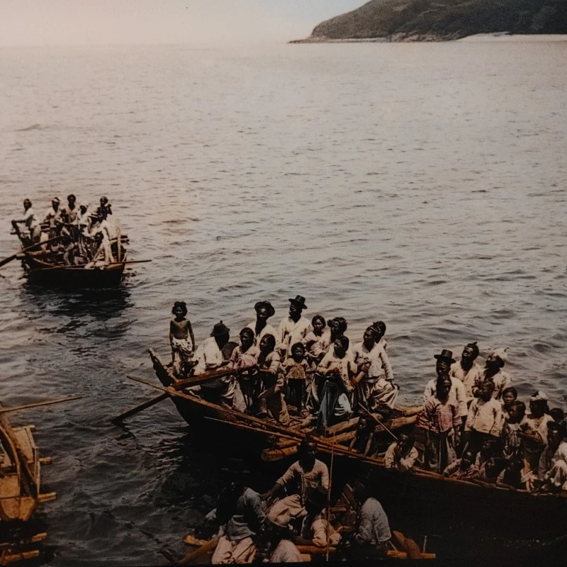 위 사진은 치료를 받으러 배를 타고 몰려든 거문도 어민들 행렬과 밀도살한 개고기를 파는 난전에 배만 볼록한 벌거숭이 꼬맹이들 사진 애처롭고 서글프기만.