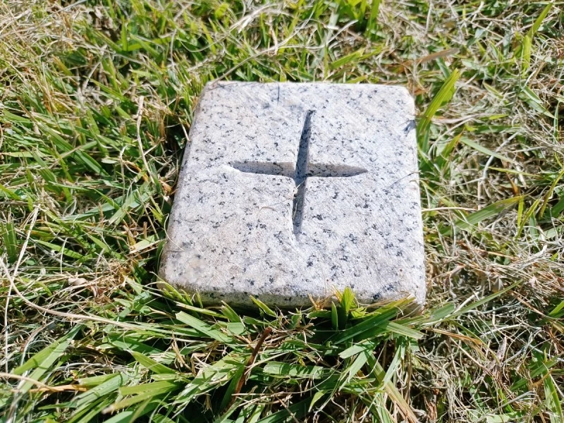 강수량을 재는 전도형 우량계/대리석에 새긴 십자 표식은 측량기준점