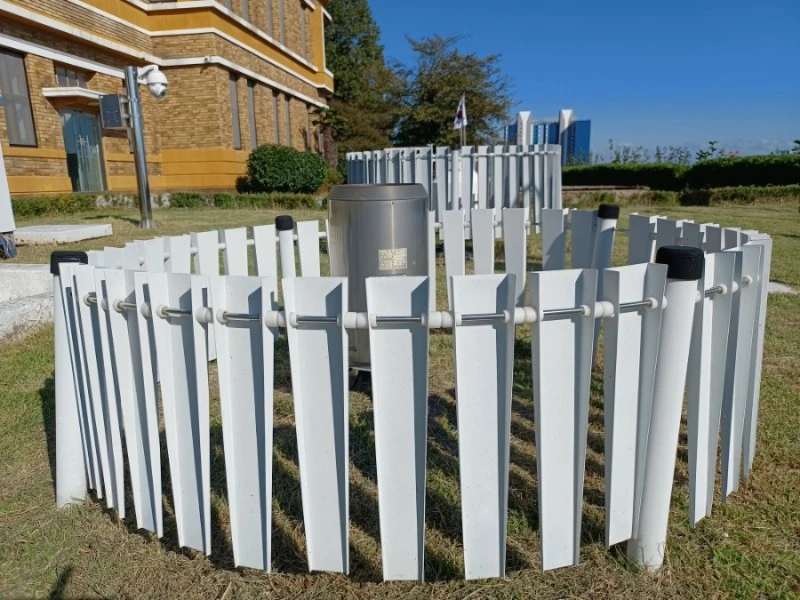 햇빛을 측정하는 기기와 우량계 및 온도계