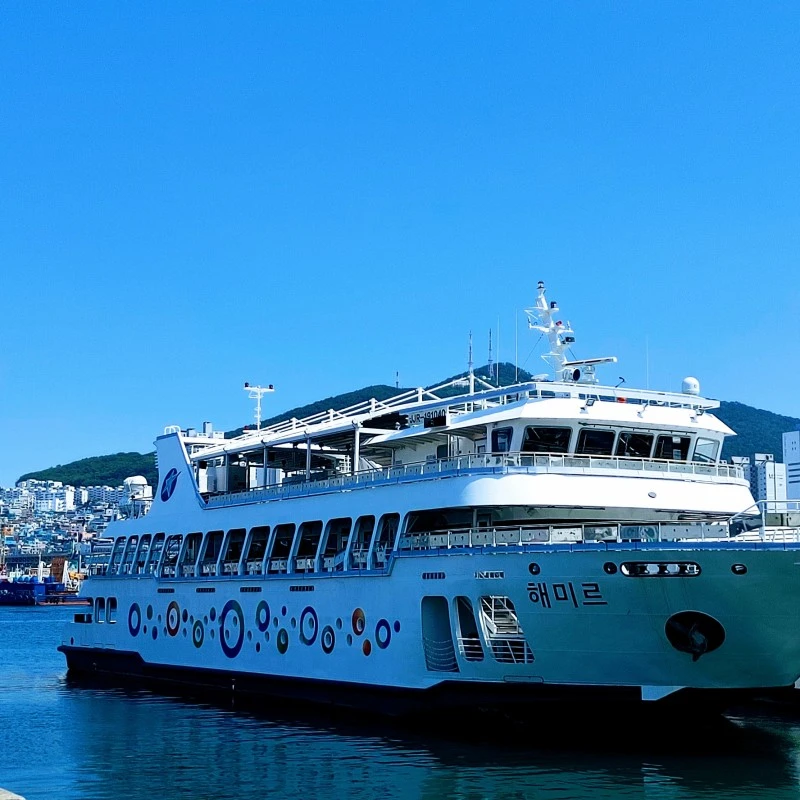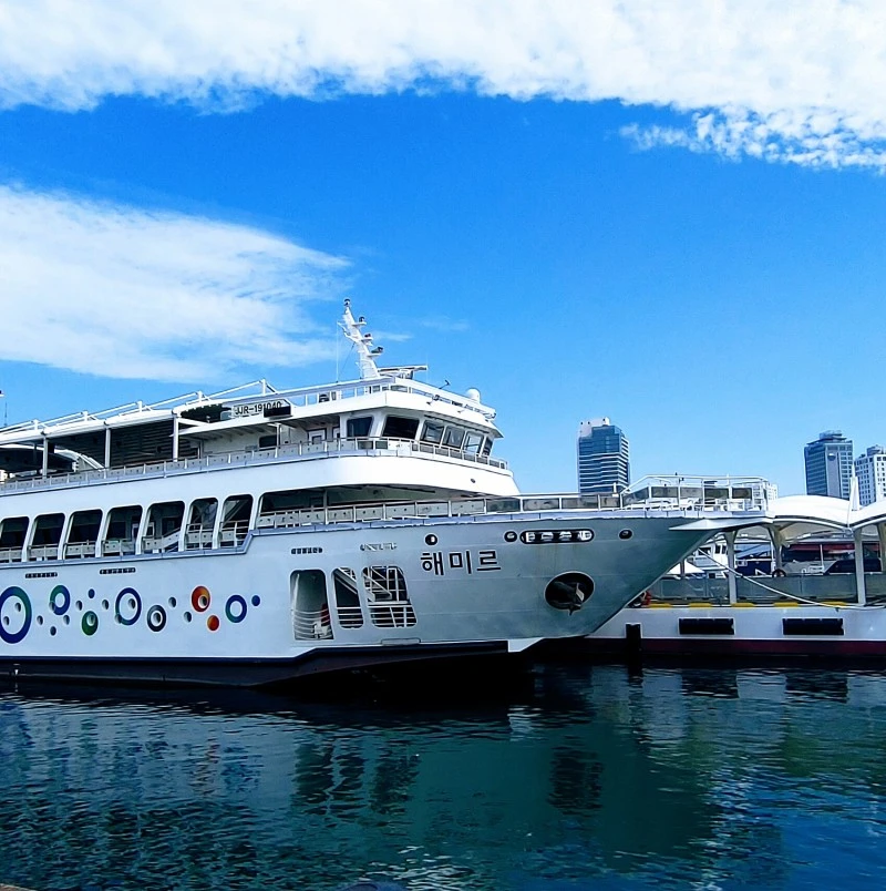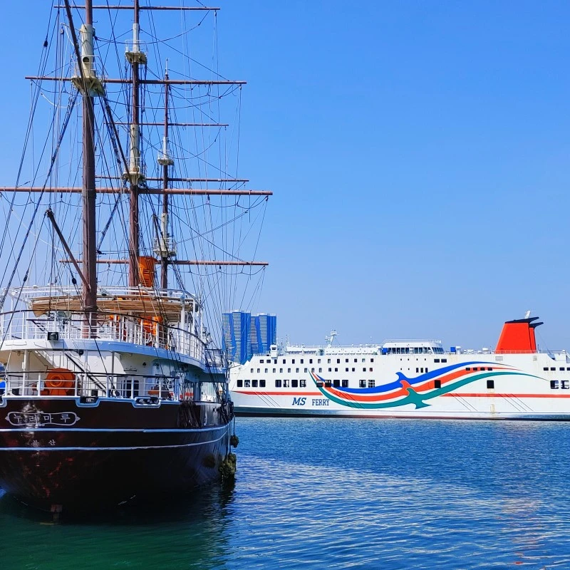 가까이 유람선이 정박해 있고 제주행 연락선과 부관훼리도 휴식 중이며 범선인 누리마루호는 연안에 바짝 붙어있었다.