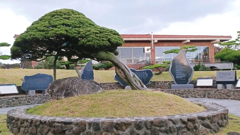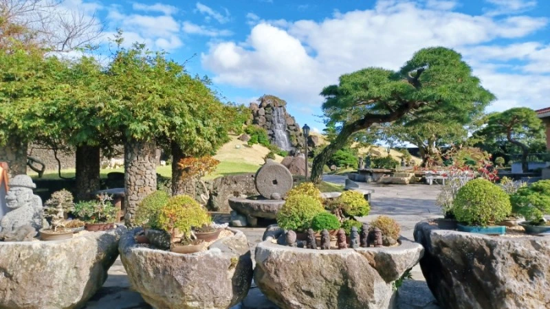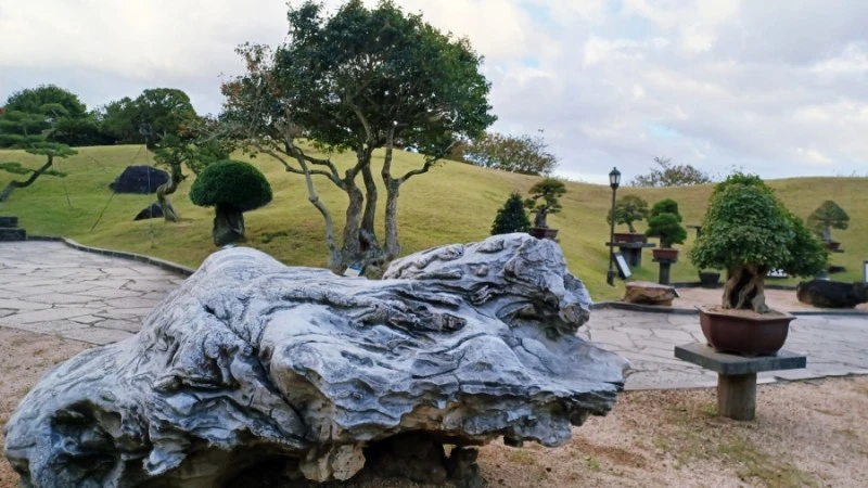 오름을 형상화한 나지막한 언덕 사이로 수천 점의 분재와 고목과 수석이 각각의 역사를 갈무리고 있는 생각하는 정원.