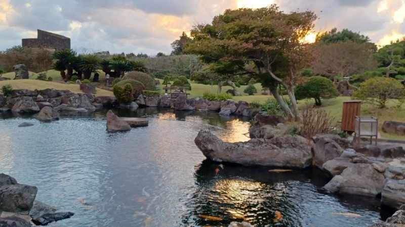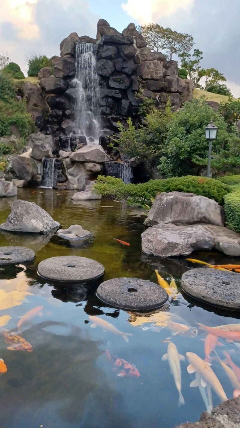 제주도의 특징인 오름을 살려서 정원을 꾸며나가면서 곳곳에 연못과 작은 폭포도 배치시켰다.