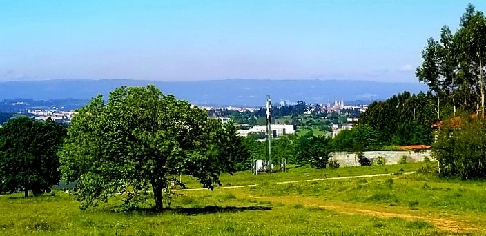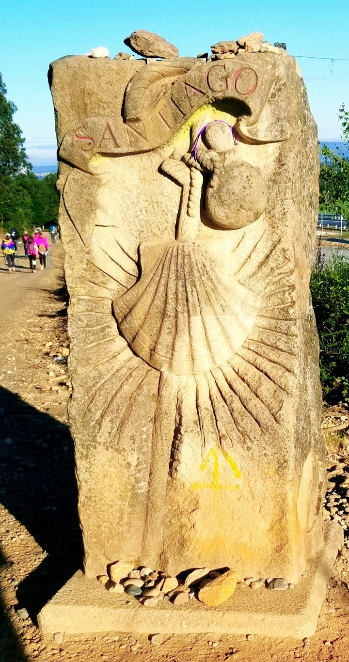몇몇 작은 마을 거쳐 페드로우스에 이르러 산 마르코스 언덕에 오르자 가리비, 지팡이, 표주박이 새겨진 석비가 기다렸고 저 멀리 산티아고 데 콤포스텔라 원경과 대성당이 보얗게 보였다.