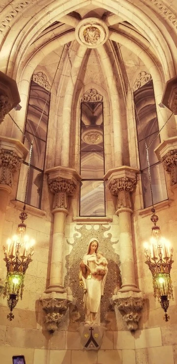 그보다도 성당 안에 들어서자 여태껏 지나왔던 여타 대성당에서 느낀 불편한 감정 -저처럼 으리으리 거창한 성전을 과연 하느님께서 바라실까?-라는 의문과는 전혀 다른 숭고한 느낌에 저절로 두 손이 모아졌다. 높기로 친다면 파밀리아 성당도 만만찮은데 어째서 거부감이 들지 않는 걸까. 생억지로 동원되어 어쩔 수 없이 작업에 임하는 농노나 소작의 강제노동이 아니라 가우디 스스로가 자발적으로 선택해 기꺼이 헌신했던 이유에서 일까.